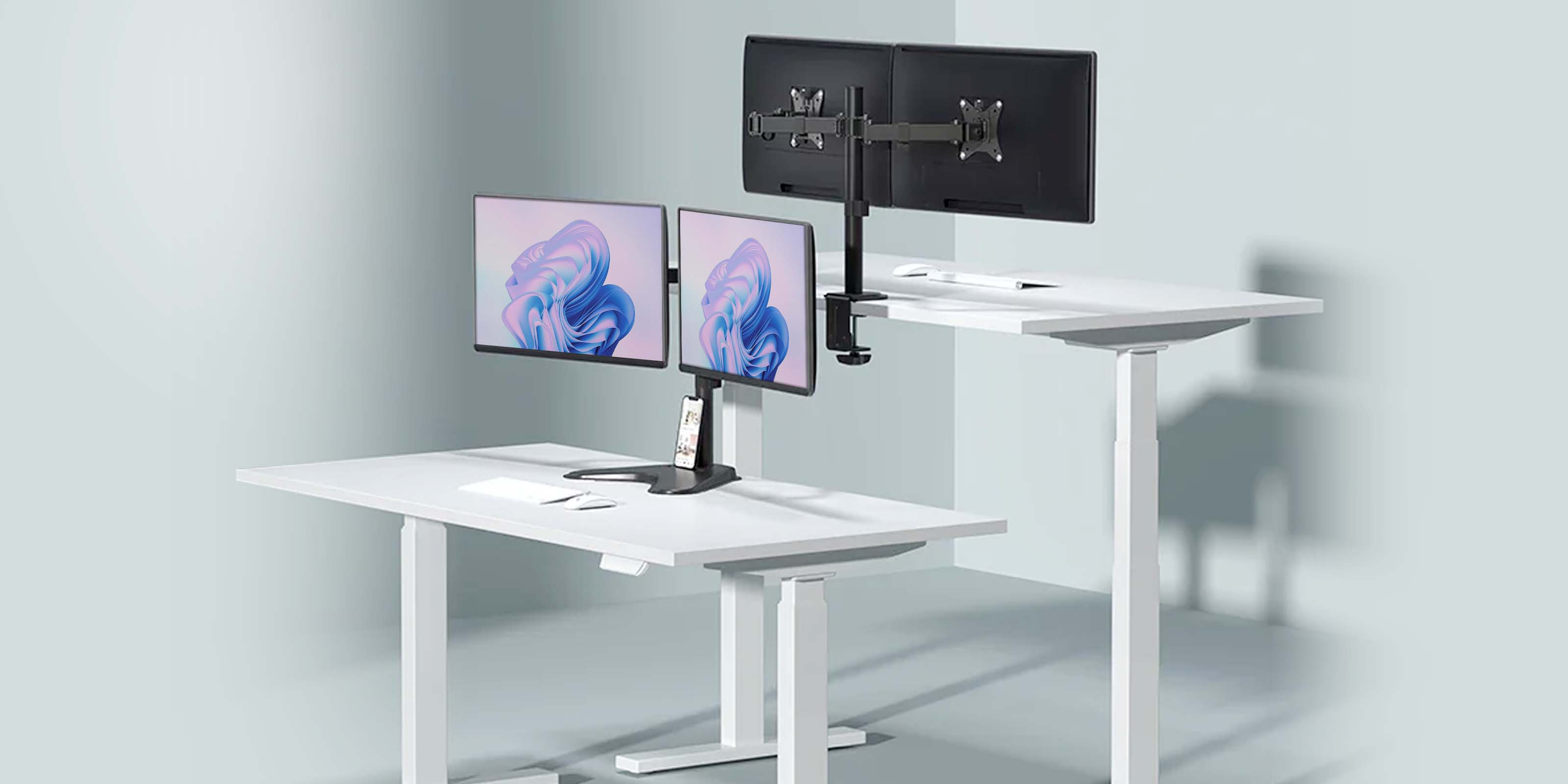Escritorio de Oficina Ergonómico Doble Estructura | Ergo Desk V2 ED727 | Blanco