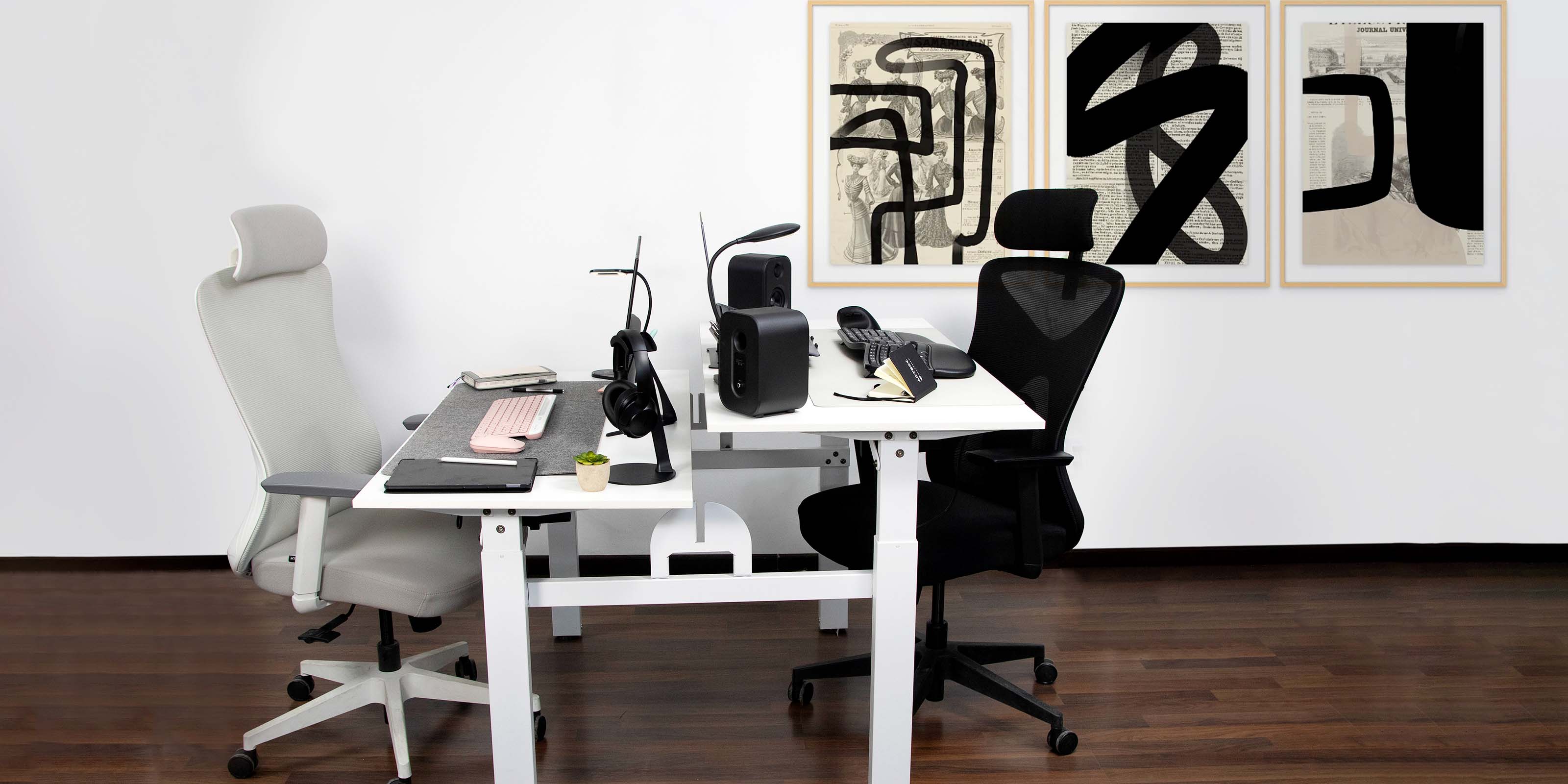 Escritorio de Oficina Ergonómico Doble Estructura | Ergo Desk V2 ED727 | Blanco