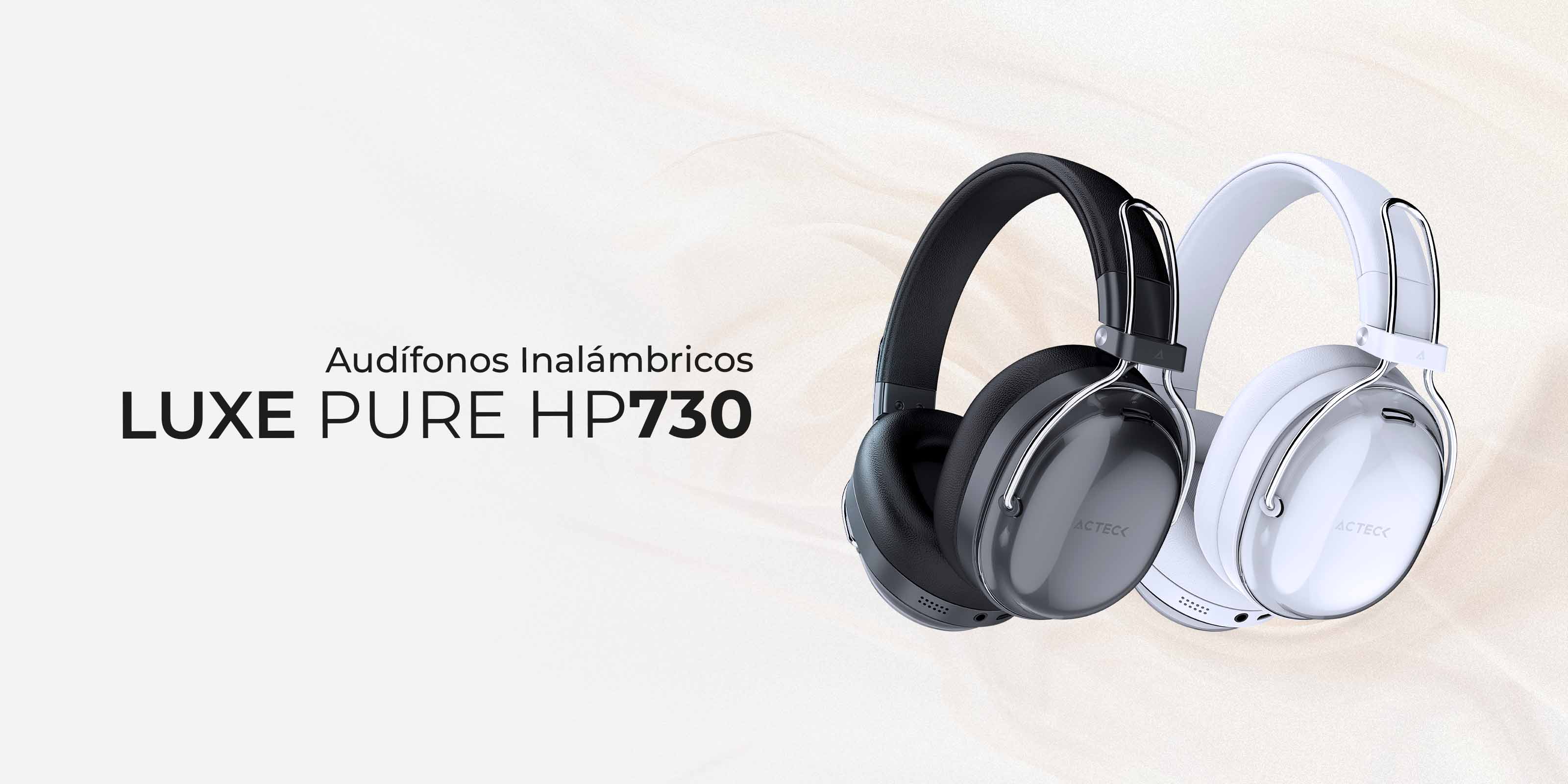Los Luxe Pure HP730 llevan la calidad de sonido al siguiente nivel con bocinas de 40 mm que ofrecen un audio nítido y equilibrado. Su cancelación de ruido híbrida y micrófono integrado permiten una experiencia inmersiva y llamadas claras en cualquier entorno. Su diseño ergonómico con almohadillas de cuero proteico y memory foam proporciona un ajuste cómodo y seguro. Con conectividad Bluetooth 5.4 y batería recargable de larga duración, están disponibles en colores Elite Negro y Elite Blanco, fusionando estilo y tecnología de alto nivel.