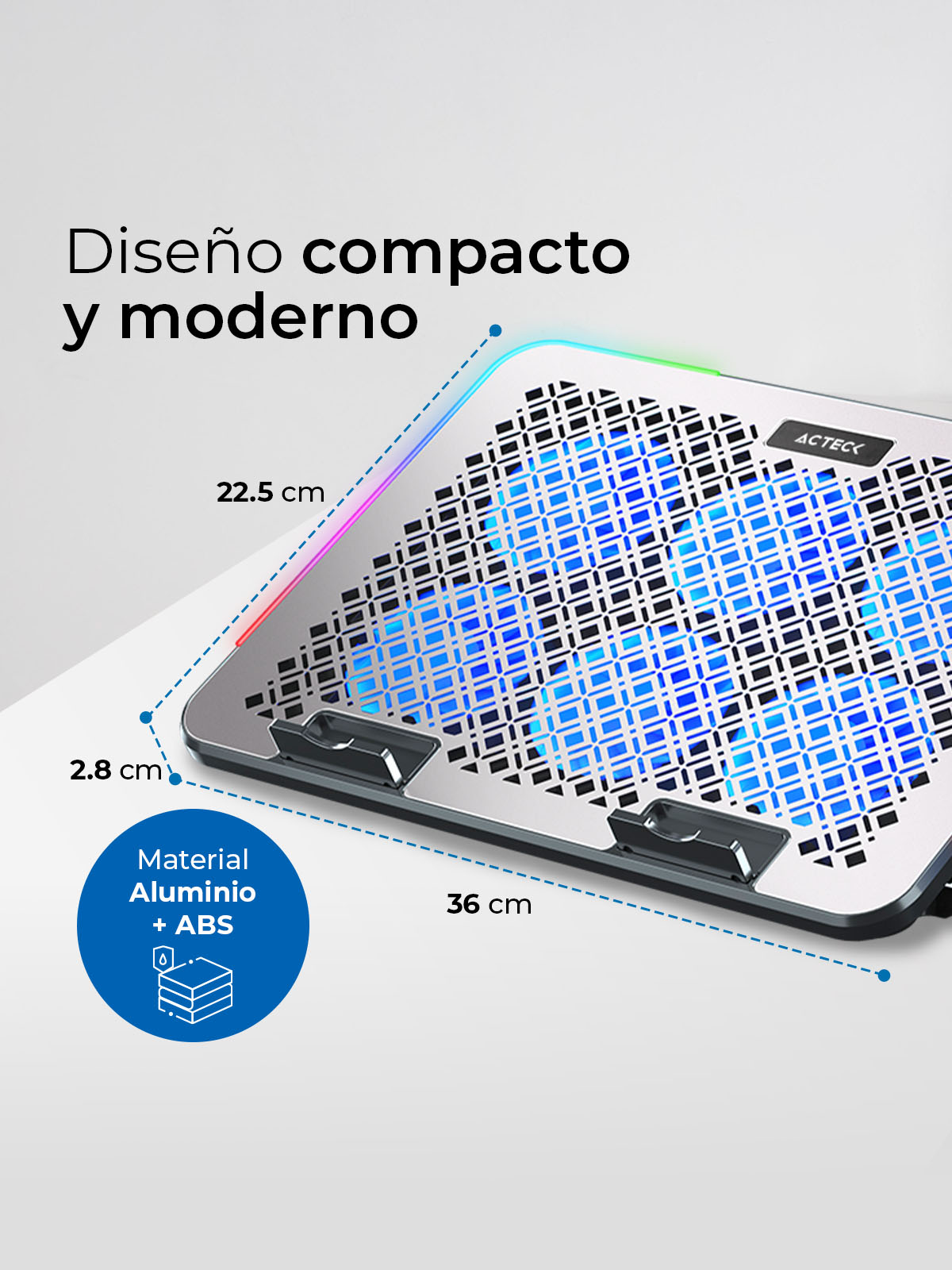 Con un panel antideslizante, botones para ajustar la velocidad de los ventiladores y el brillo de las luces RGB, podrás personalizar el enfriamiento con solo un toque.