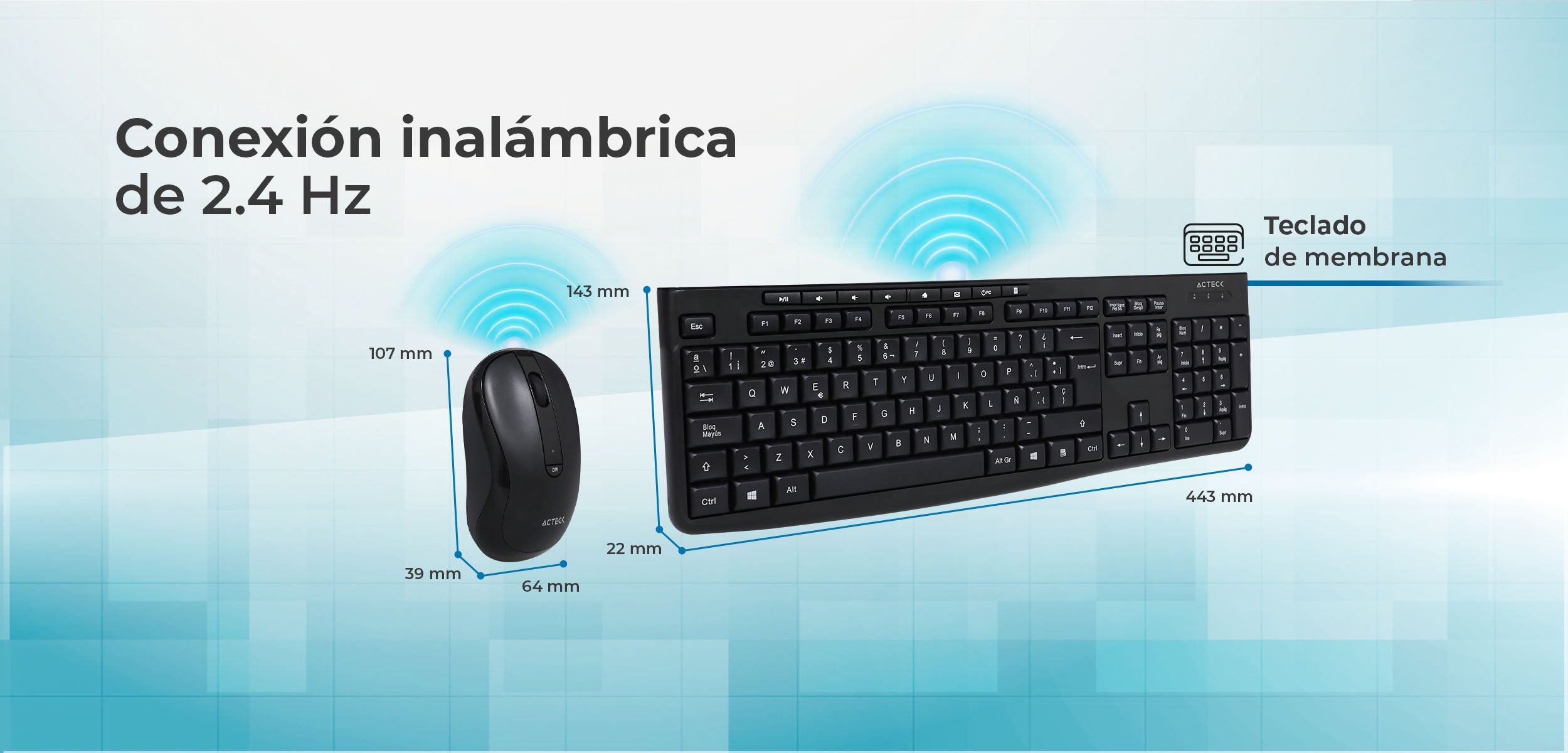 Combo 2 en 1 Inalambrico | Creator Prime MK225 | Teclado Clásico Multimedia + Mouse + 2.4 Mhz + 1600 DPI | Essential | Negro