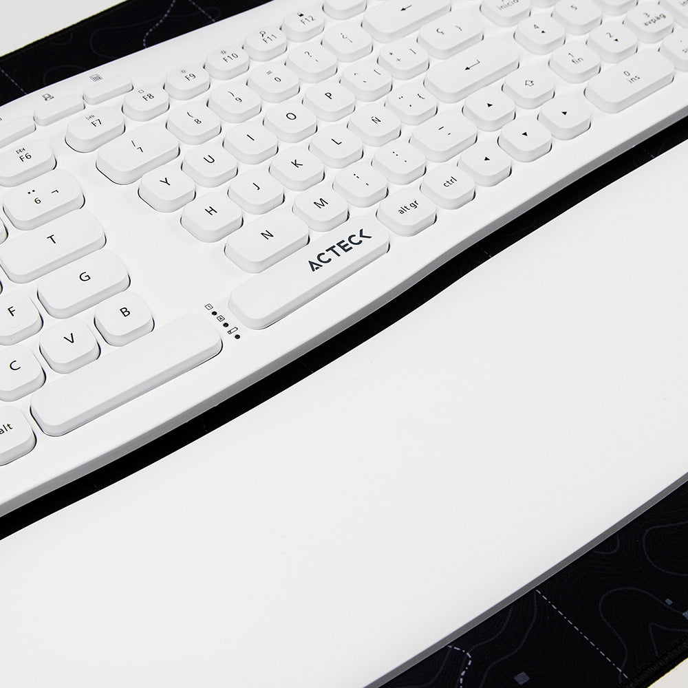 El teclado incluye un reposa muñecas magnético, brindando soporte ergonómico para reducir la fatiga en las manos durante su uso prolongado.