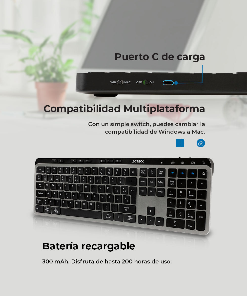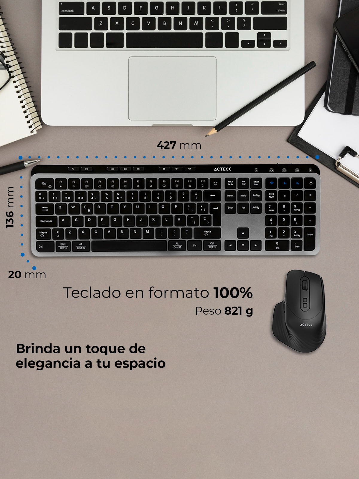 La compatibilidad con Mac y las teclas multimedia directas permiten acceder rápidamente a funciones clave como volumen, reproducción o brillo, mejorando la productividad y ofreciendo una experiencia más intuitiva.