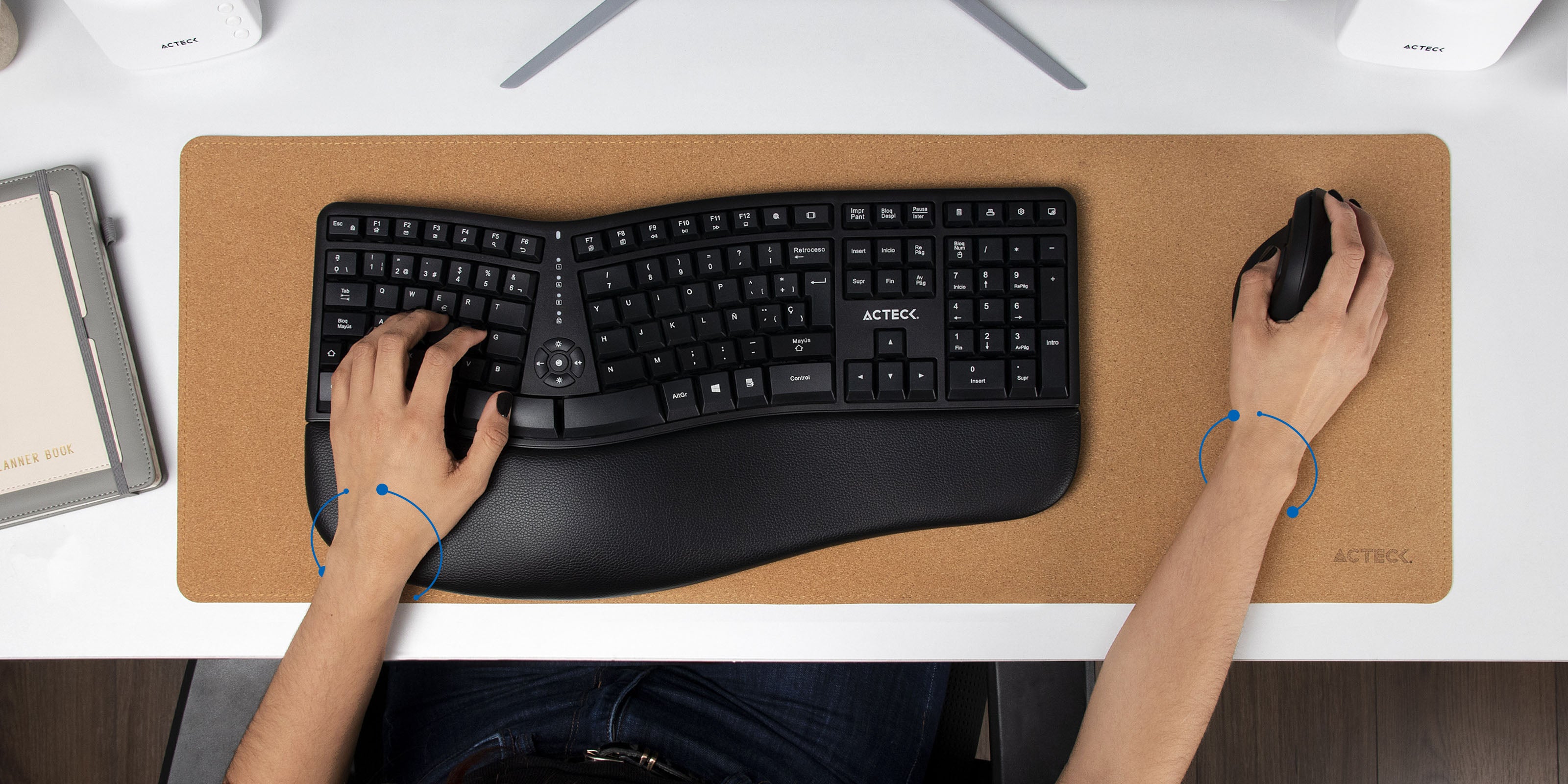 Reduce la fatiga y maximizando tu rendimiento al escribir de manera natural y cómoda, con las muñecas en perfecra ergonomía.