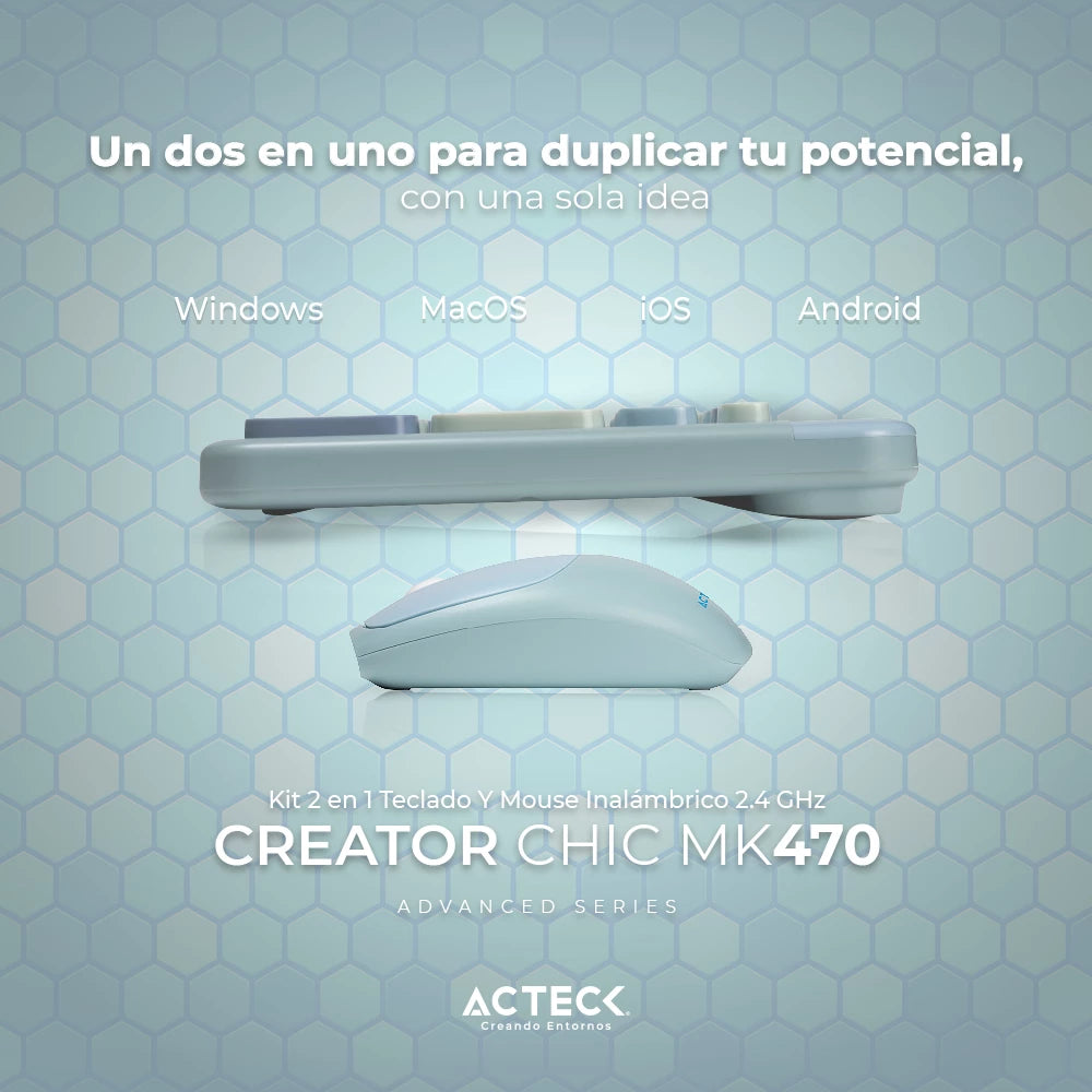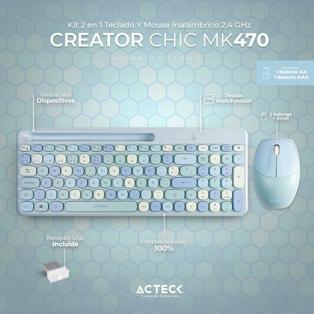 Combo 2 en 1 teclado y mouse Inalámbrico | Creator Chic Colors MK470 | Azul