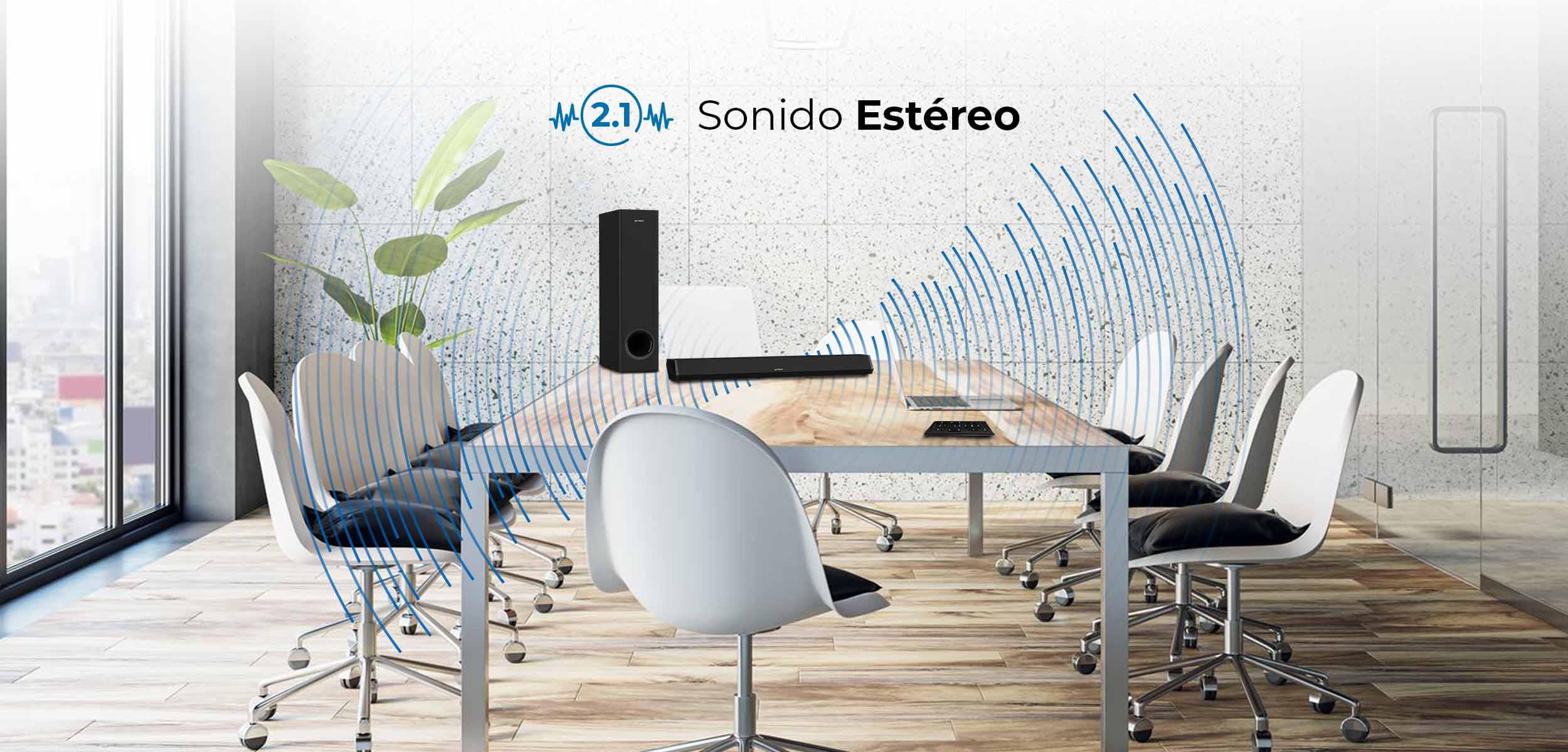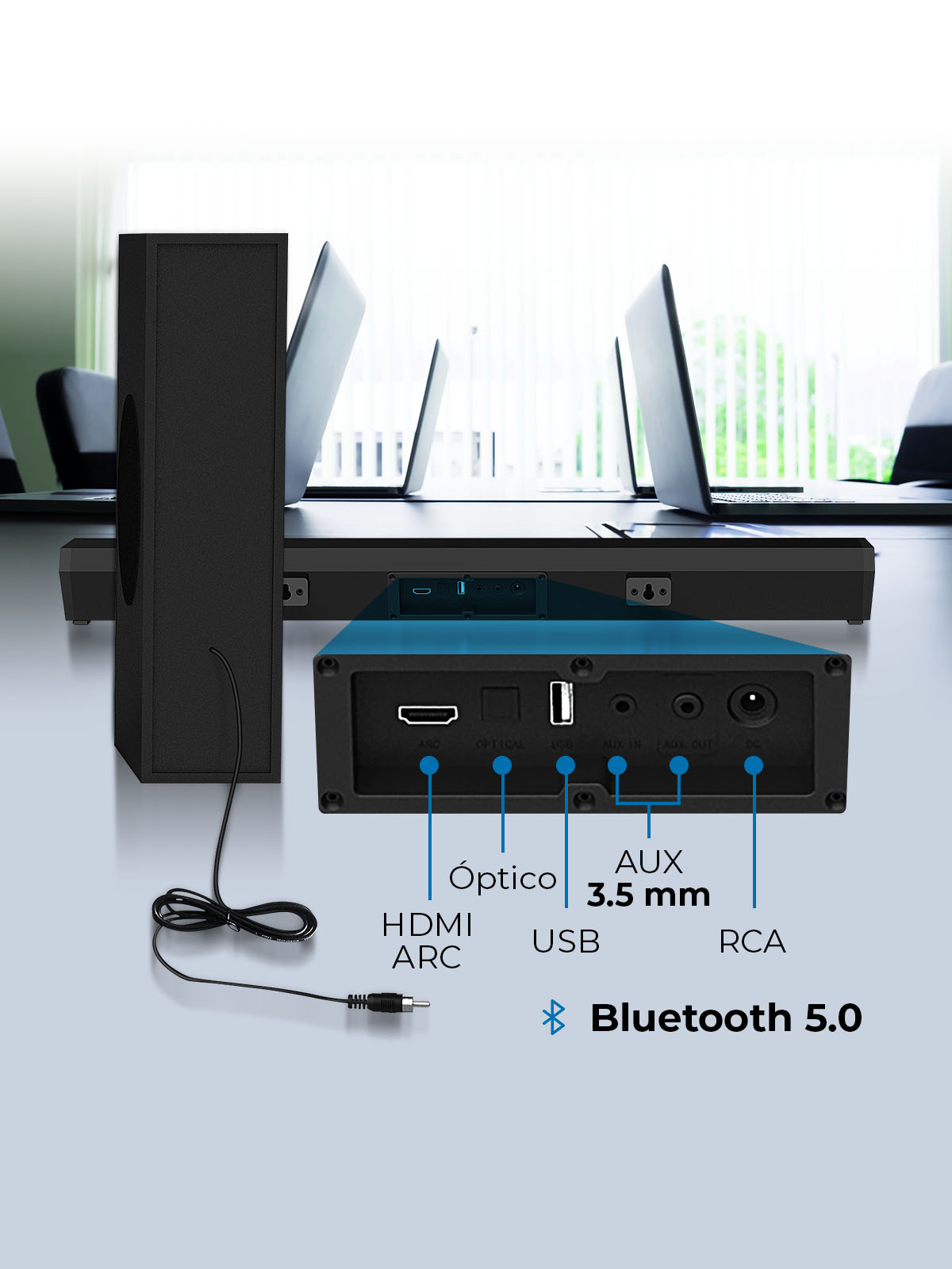 Experimenta la fuerza del audio con 70W RMS y el impacto del sonido estéreo 2.1. Nuestra barra de sonido con subwoofer te sumerge en un espectáculo sonoro que te hará sentir cada nota, cada efecto y cada emoción con una intensidad sin igual.
