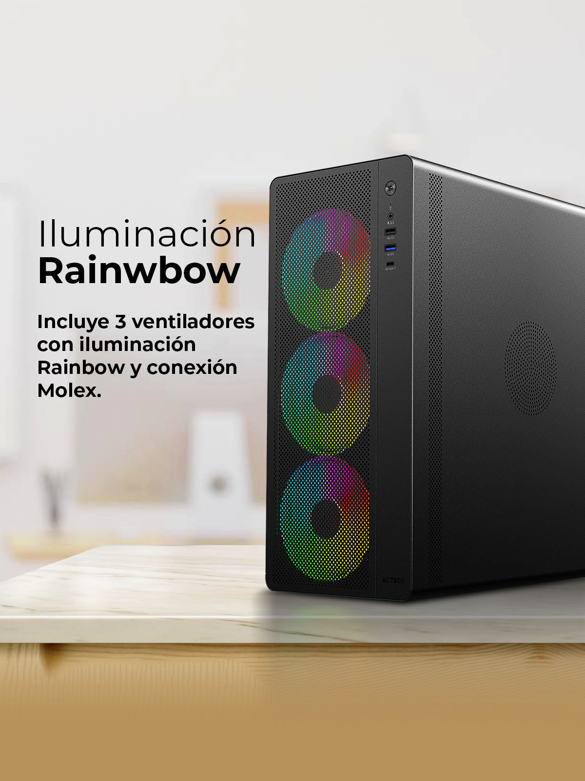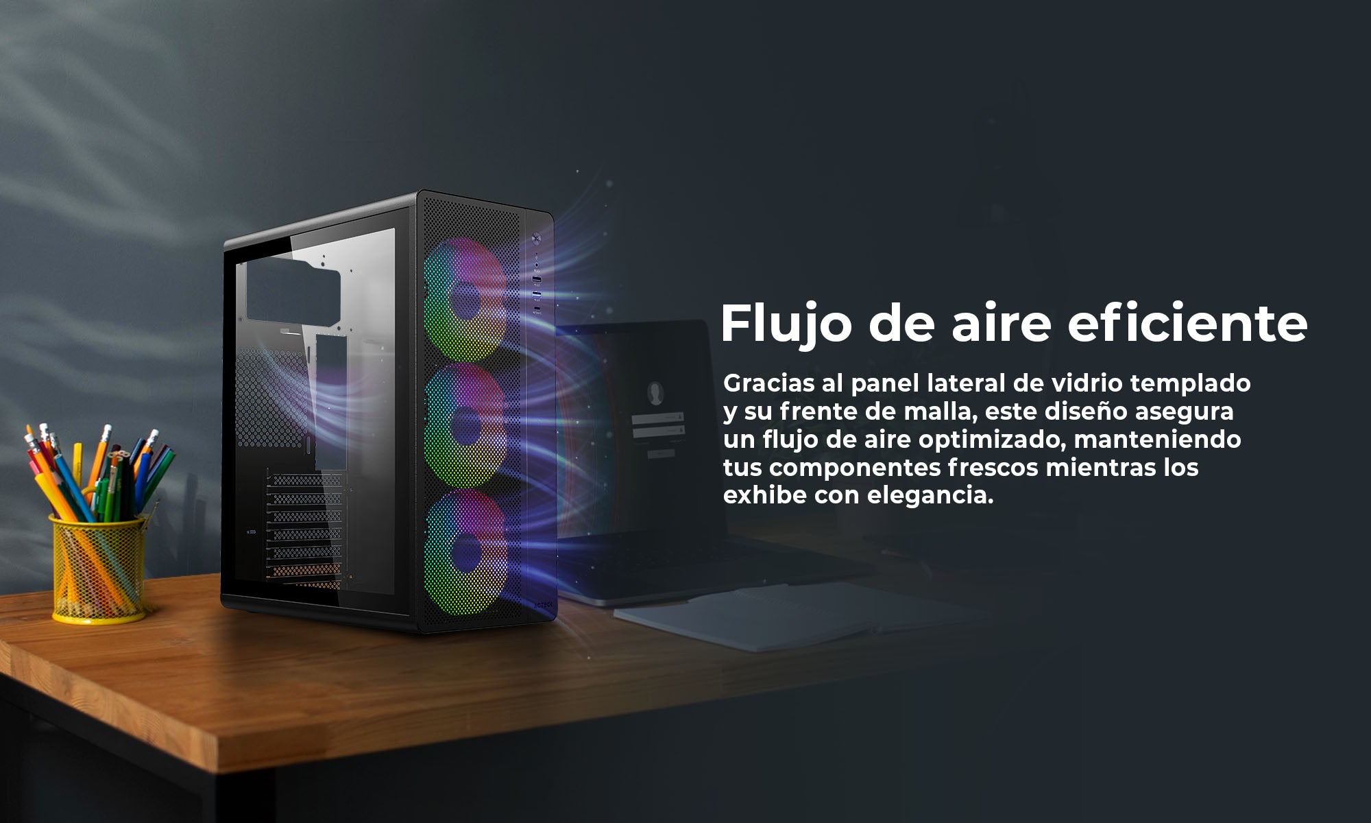 Este gabinete proporciona una solución de refrigeración efectiva, manteniendo tu sistema en temperaturas ideales incluso durante sesiones intensas de uso.