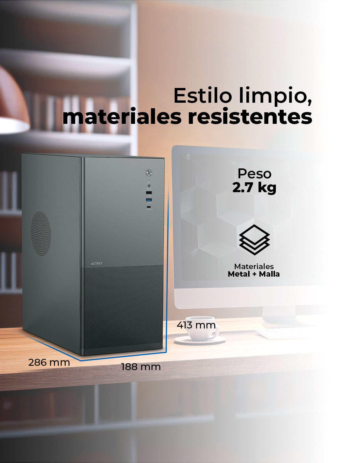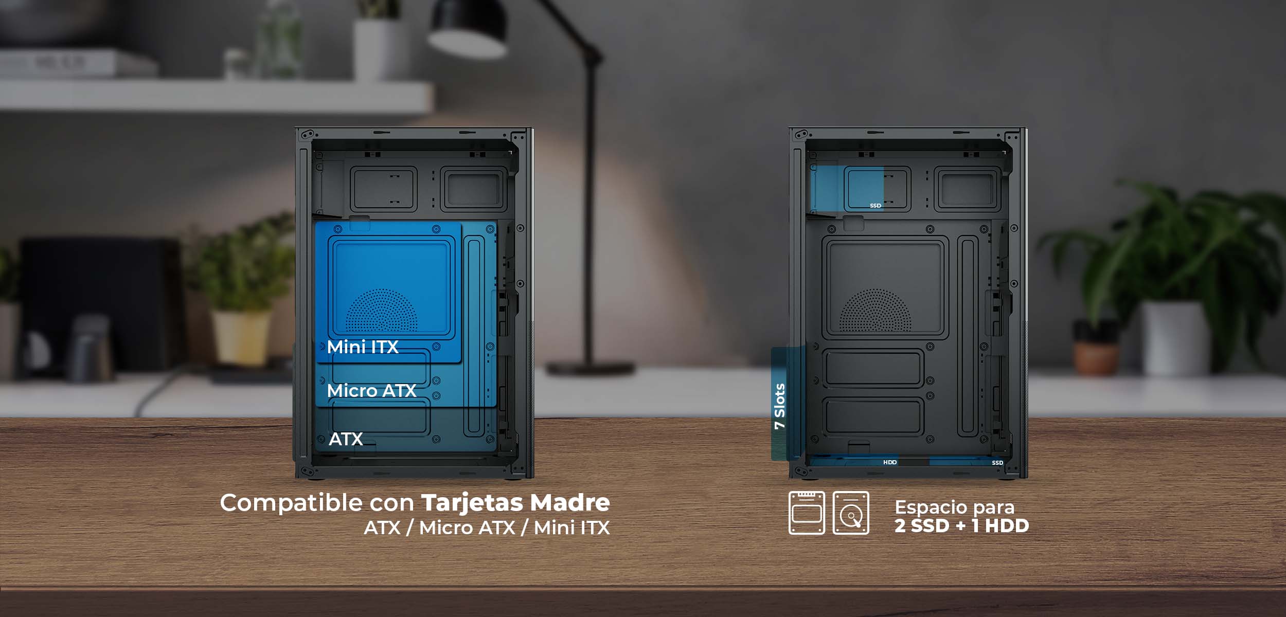 Soporta tarjetas madre Micro ATX y Mini ITX, optimizando el espacio disponible sin comprometer el rendimiento.