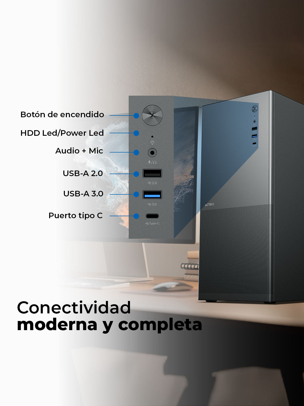 Con 4 slots expandibles y bahías para unidades SSD y HDD, este gabinete permite ampliar almacenamiento y desempeño, garantizando orden y productividad.