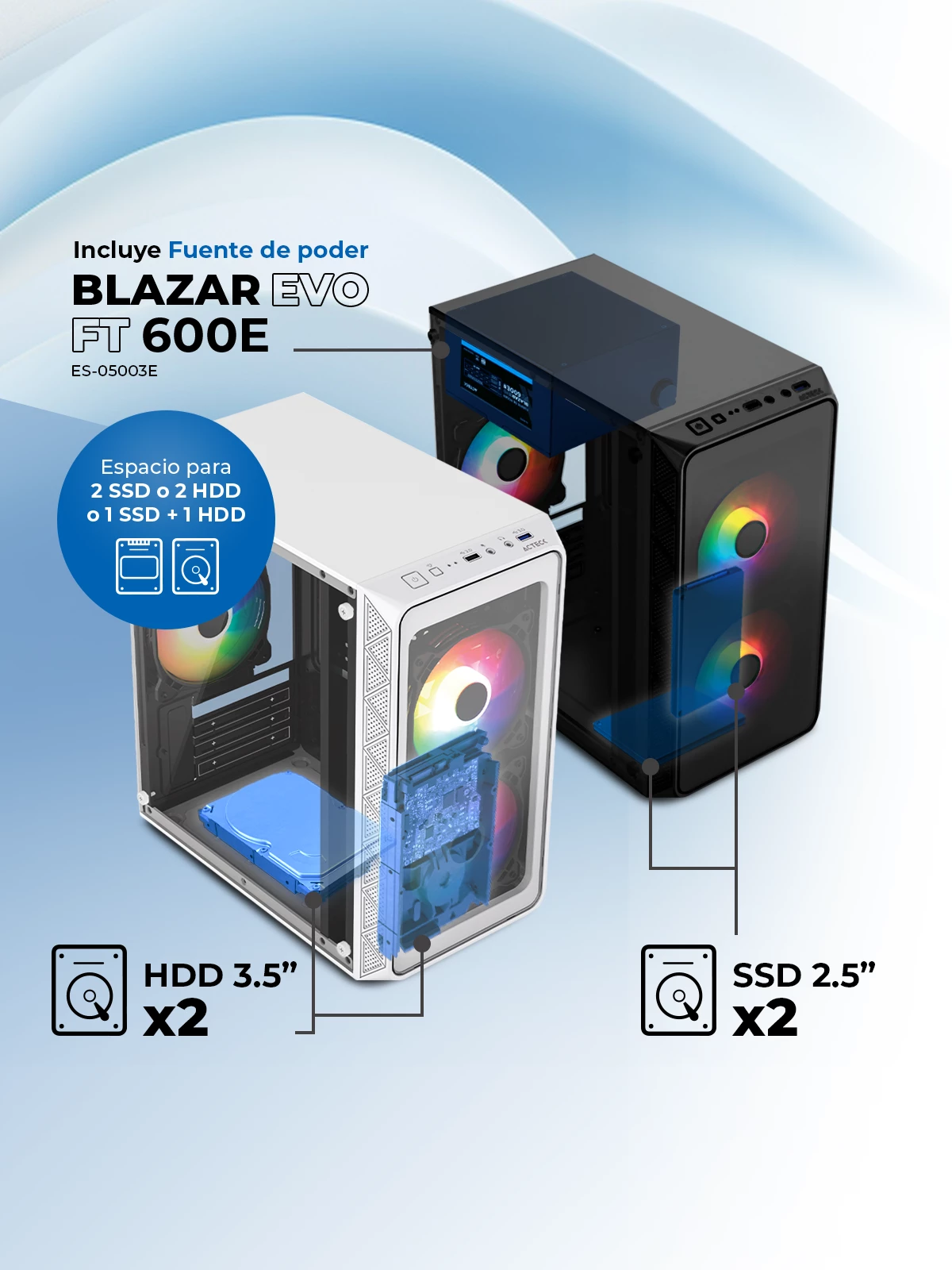 Optimiza tu espacio de trabajo con nuestros gabinetes en blanco y negro! Diseñados para máxima flexibilidad, permiten instalar dos SSD, dos HDD o una combinación de ambos. La conexión de la fuente de poder es rápida y sencilla. Moderniza tu equipo con estilo y funcionalidad. ¡Elige el tuyo hoy