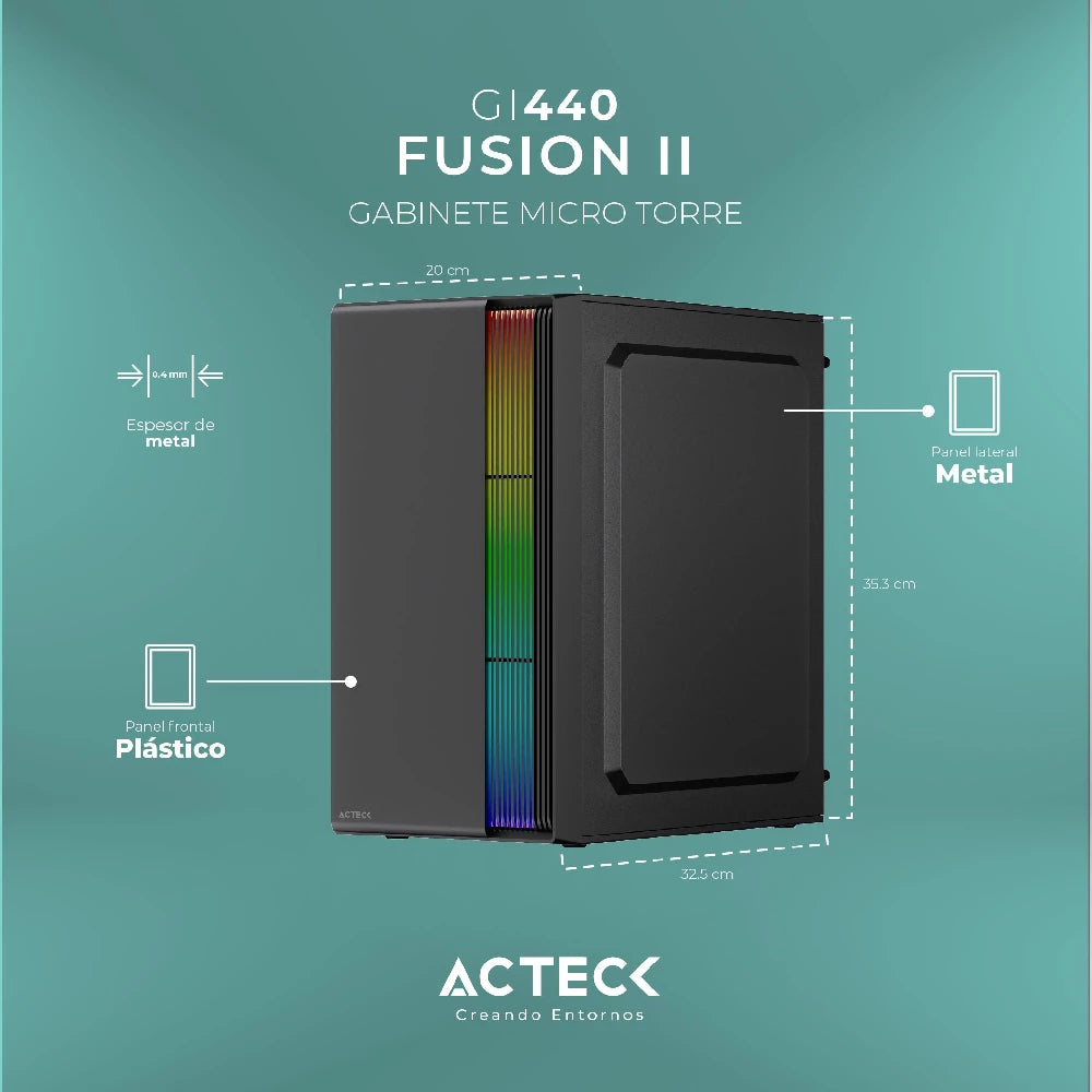 Equipado con una fuente de alimentación ATX Plus de 500W, el Fusion II GI440 garantiza una entrega de energía confiable y eficiente para mantener tus operaciones en marcha sin problemas.