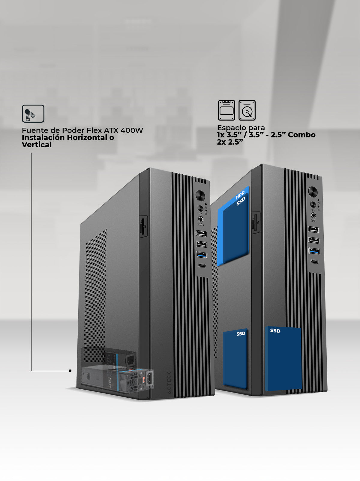 Diseño Slim, espacio bien aprovechado. Compacta y funcional, esta Mini Torre es perfecta para oficinas modernas y escritorios reducidos.