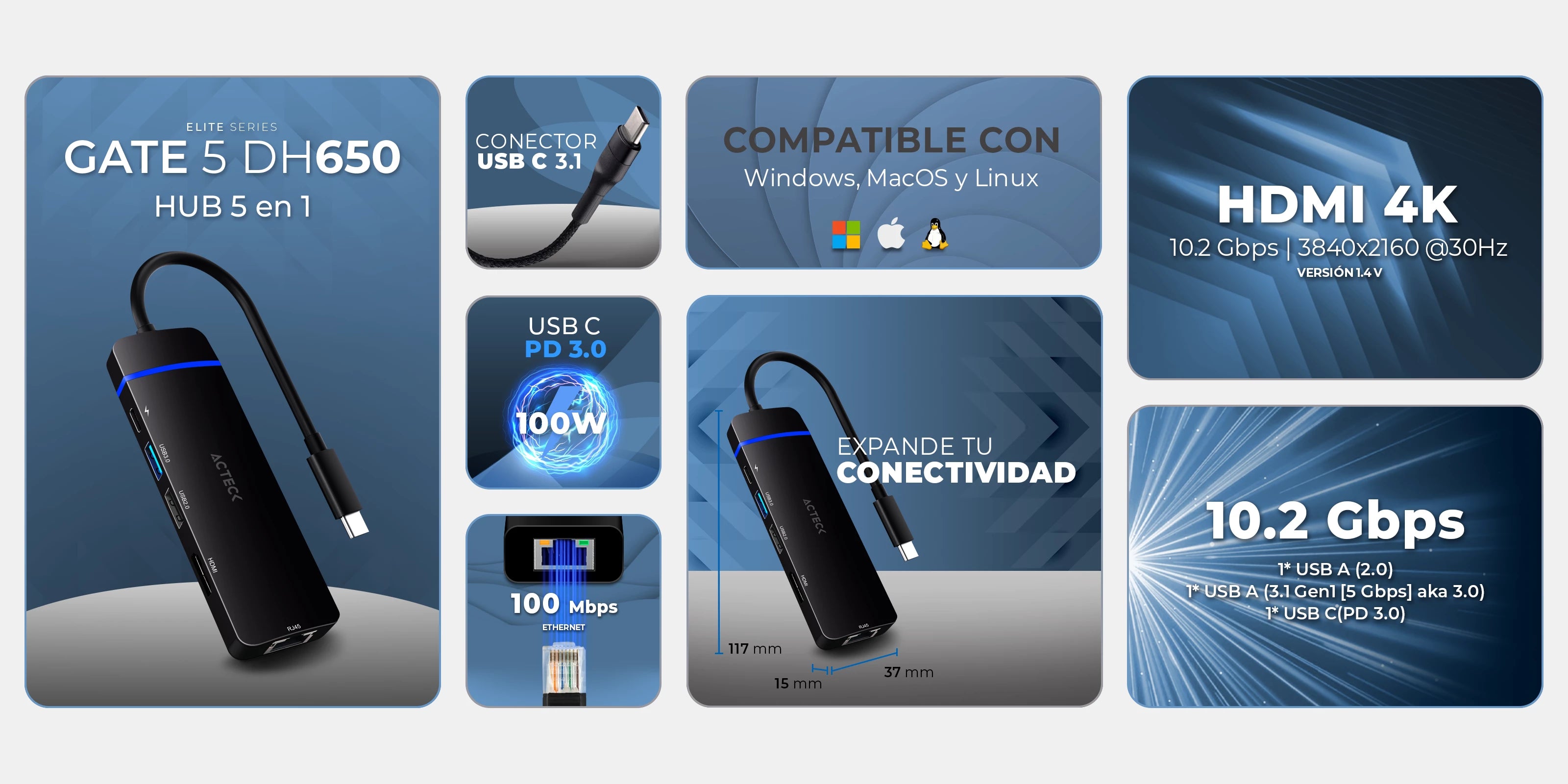 HUB 5 en 1 | Gate 5 DH650 | Negro