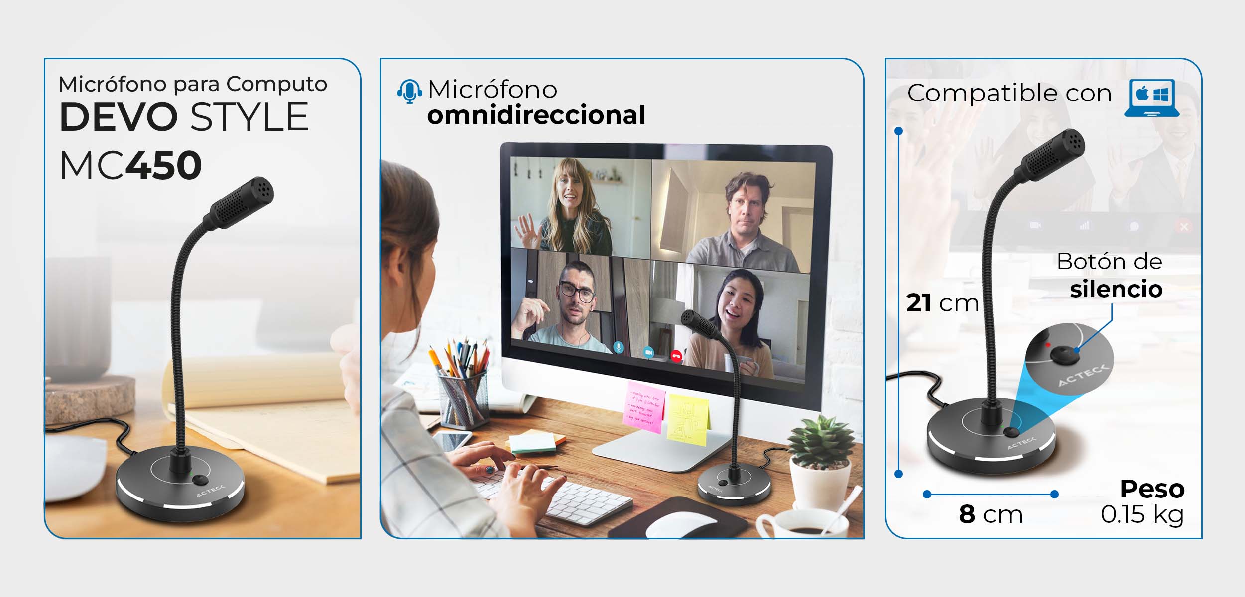 Descubre el Micrófono para Cómputo Devo Style MC450, diseñado para ofrecerte una experiencia de audio profesional en todas tus actividades. Este micrófono cardioide con conexión USB y base con control garantiza captación precisa de voz, minimizando el ruido ambiente para una comunicación nítida y efectiva. Su cuerpo flexible permite ajustarlo a tu preferencia, mientras que su diseño elegante en color negro se integra perfectamente en cualquier espacio de trabajo. Ideal para videoconferencias, streaming y grabación de contenido, el MC450 es una herramienta avanzada que eleva tu experiencia sonora con máxima calidad y estilo.