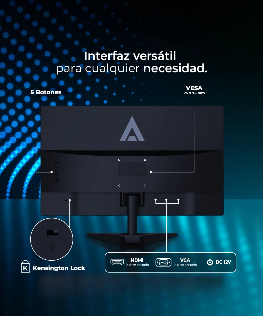 Descubre la combinación perfecta de seguridad y versatilidad con nuestro nuevo monitor. Diseñado para adaptarse a tus necesidades tanto en el hogar como en la oficina, este monitor ofrece una conectividad avanzada que incluye puertos HDMI y VGA, así como un conector DC de 12V para una alimentación estable y confiable. Además, su innovador sistema de seguridad Kensington Lock proporciona tranquilidad adicional al proteger tu inversión contra robos o manipulaciones no autorizadas. Con esta potente combinación de características, nuestro monitor te brinda la libertad de disfrutar de una experiencia visual sin preocupaciones, ya sea para trabajo o entretenimiento.