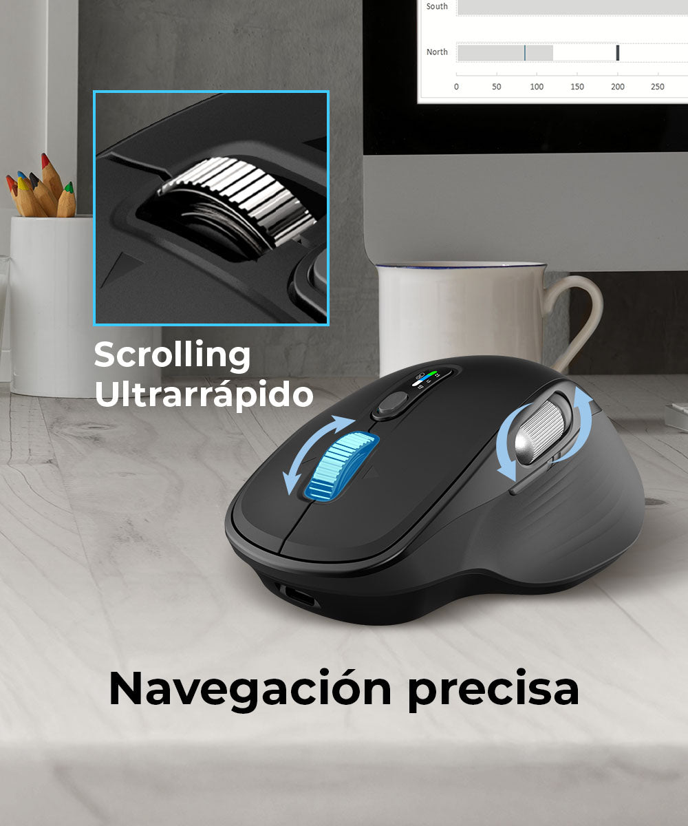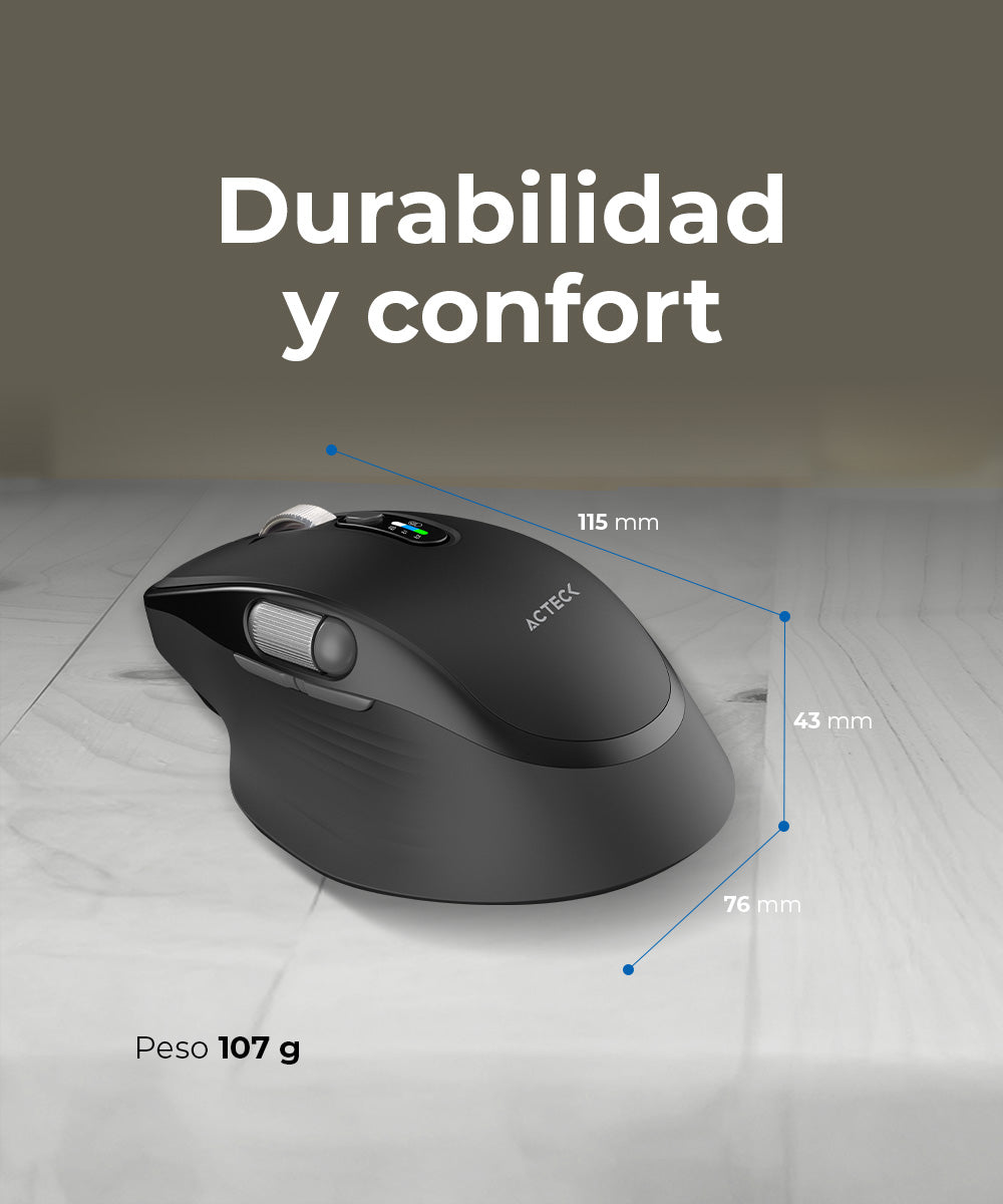 Lleva tu productividad al siguiente nivel con el Mouse Multidispositivo Virtuos Pro Ultra MI777, un dispositivo versátil y potente. Gracias a su conectividad 2.4 GHz junto con dos modos de Bluetooth 5.1, puedes alternar fácilmente entre equipos sin cambiar de mouse. Su sensor óptico de hasta 4 800 DPI ofrece una precisión excepcional, mientras que sus 11 botones te permiten personalizar accesos rápidos para tu flujo de trabajo. Su diseño ergonómico cuida de tu muñeca, y la rueda de desplazamiento metálica con inclinación te da control total. Con una batería recargable de 1 000 mAh, tienes autonomía prolongada sin importar dónde trabajes. En elegante color Elite Negro, es la elección definitiva para quienes quieren rendimiento, comodidad y conectividad de alto nivel.
