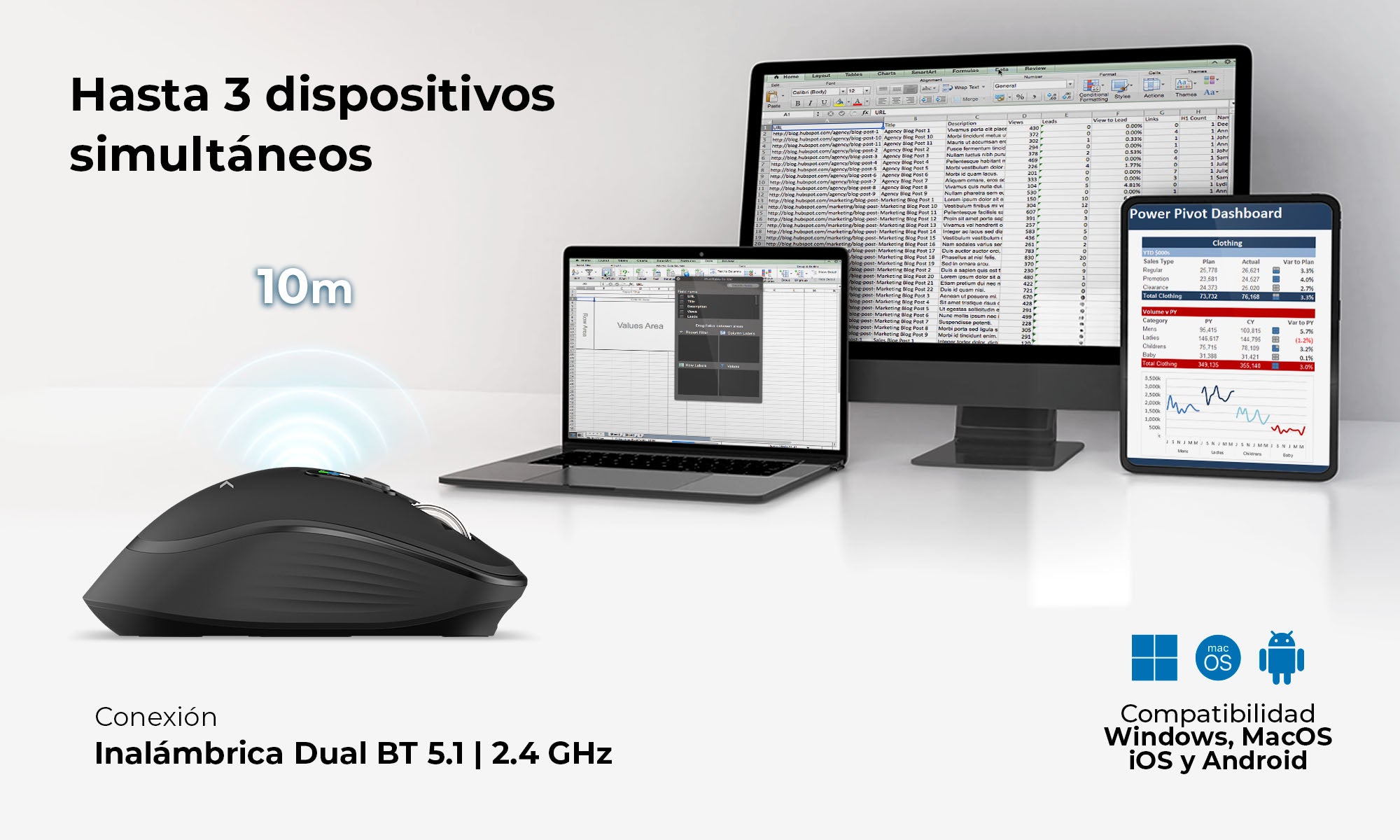 Fabricado con ABS y TPE, ofrece resistencia superior, tacto suave y ergonomía cómoda, asegurando durabilidad y una experiencia de uso agradable durante largas jornadas diarias.
