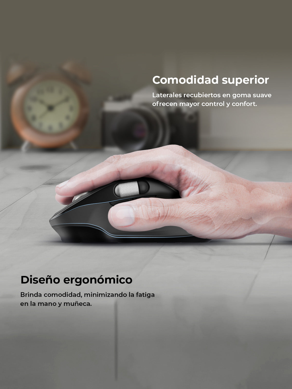 Laterales con recubrimiento de goma brindan control preciso y comodidad prolongada, mientras su diseño ergonómico reduce la fatiga y asegura una experiencia fluida durante sesiones de uso continuo