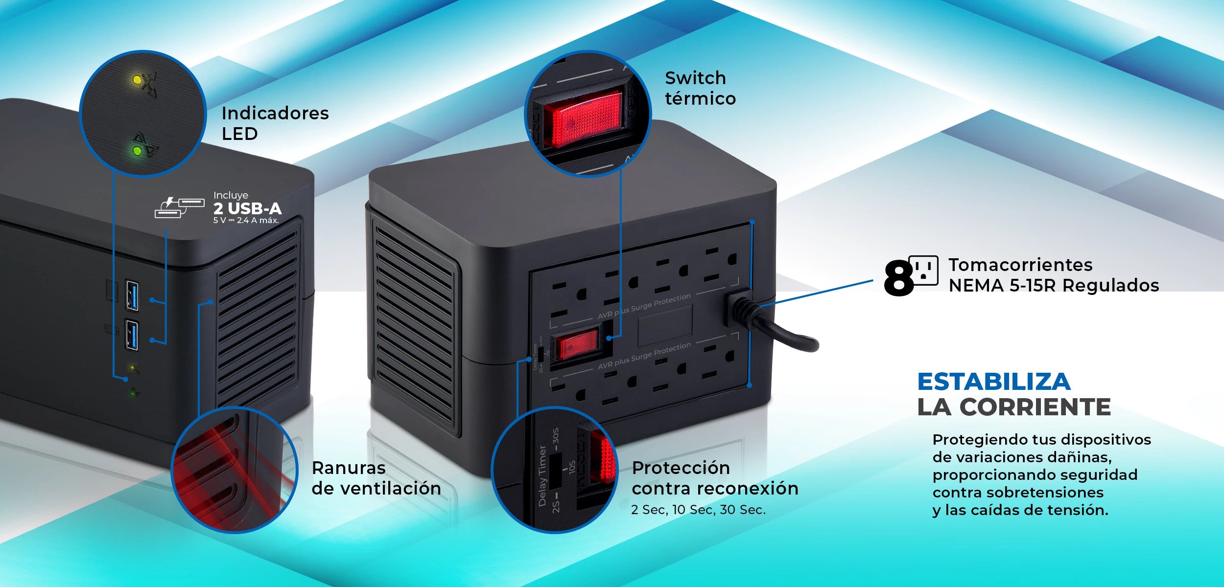 Proporciona una protección confiable contra fluctuaciones de voltaje, sobretensiones y picos de corriente, asegurando un suministro estable de energía para una variedad de dispositivos electrónicos. Con su capacidad para conectar múltiples dispositivos, ofrece comodidad y organización, al tiempo que garantiza una conexión segura y sin problemas.