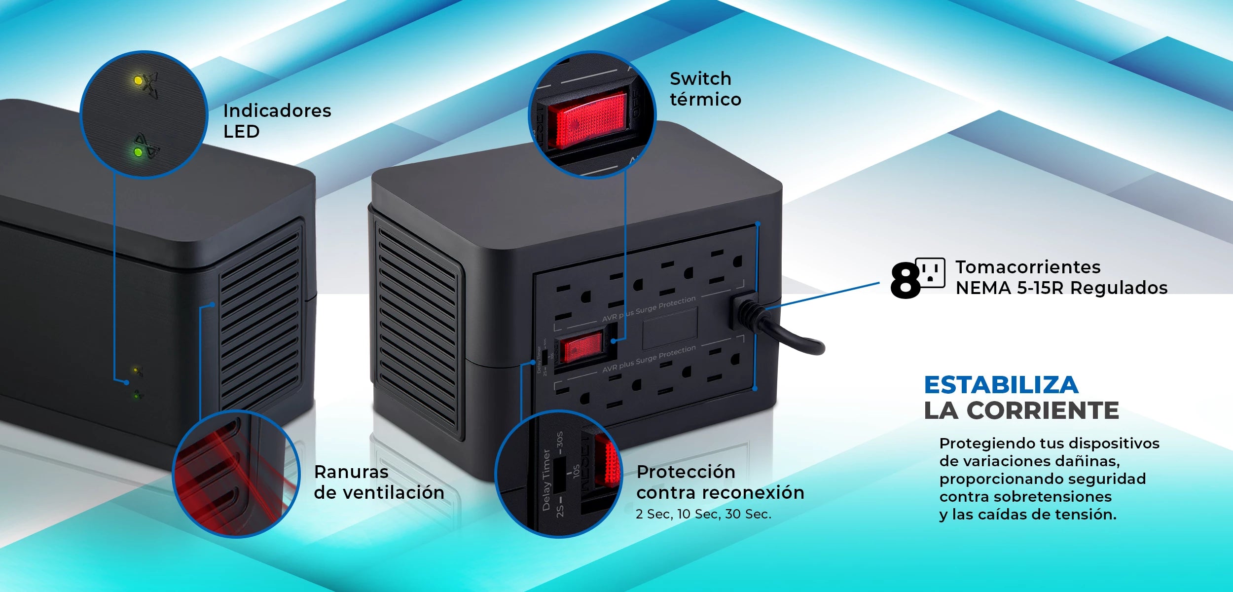 Proporciona una protección confiable contra fluctuaciones de voltaje, sobretensiones y picos de corriente, asegurando un suministro estable de energía para una variedad de dispositivos electrónicos. Con su capacidad para conectar múltiples dispositivos, ofrece comodidad y organización, al tiempo que garantiza una conexión segura y sin problemas.