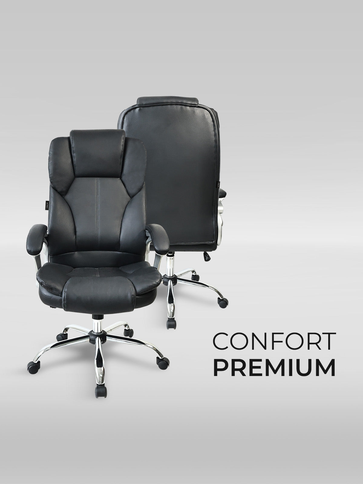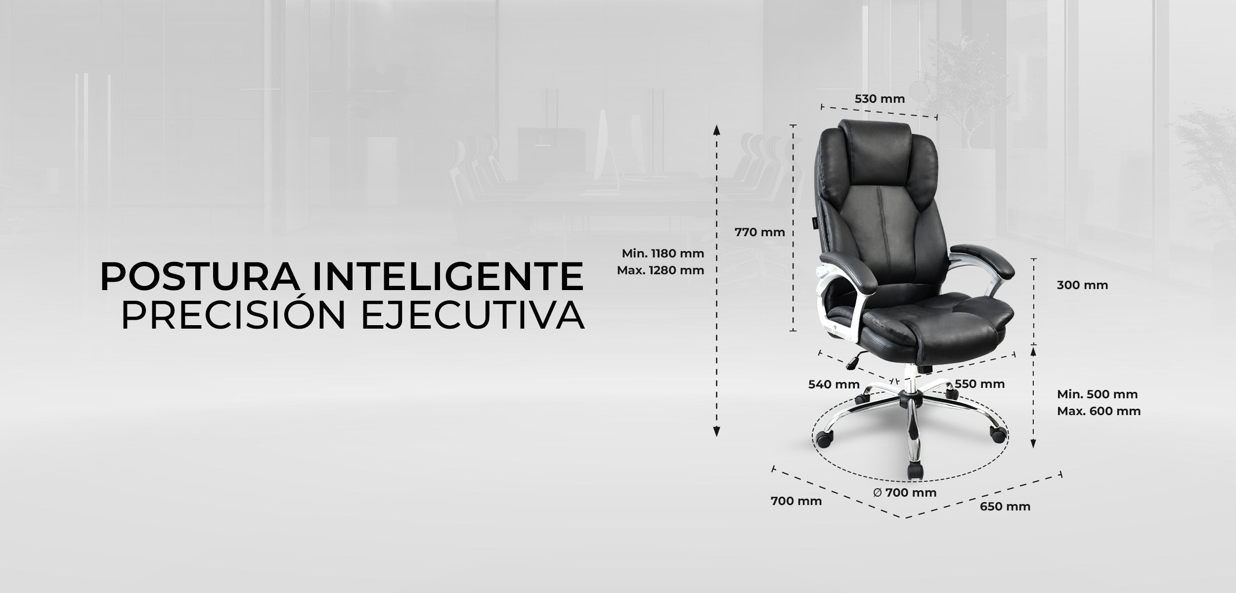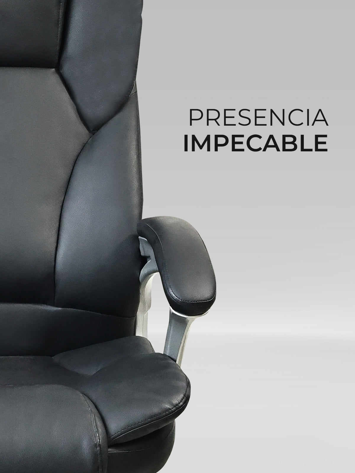 Esta silla combina estética contemporánea y funcionalidad de alto nivel. Su perfil limpio y acabados en cuero PU negro elevan cualquier oficina moderna, transmitiendo poder y estilo sin esfuerzo.