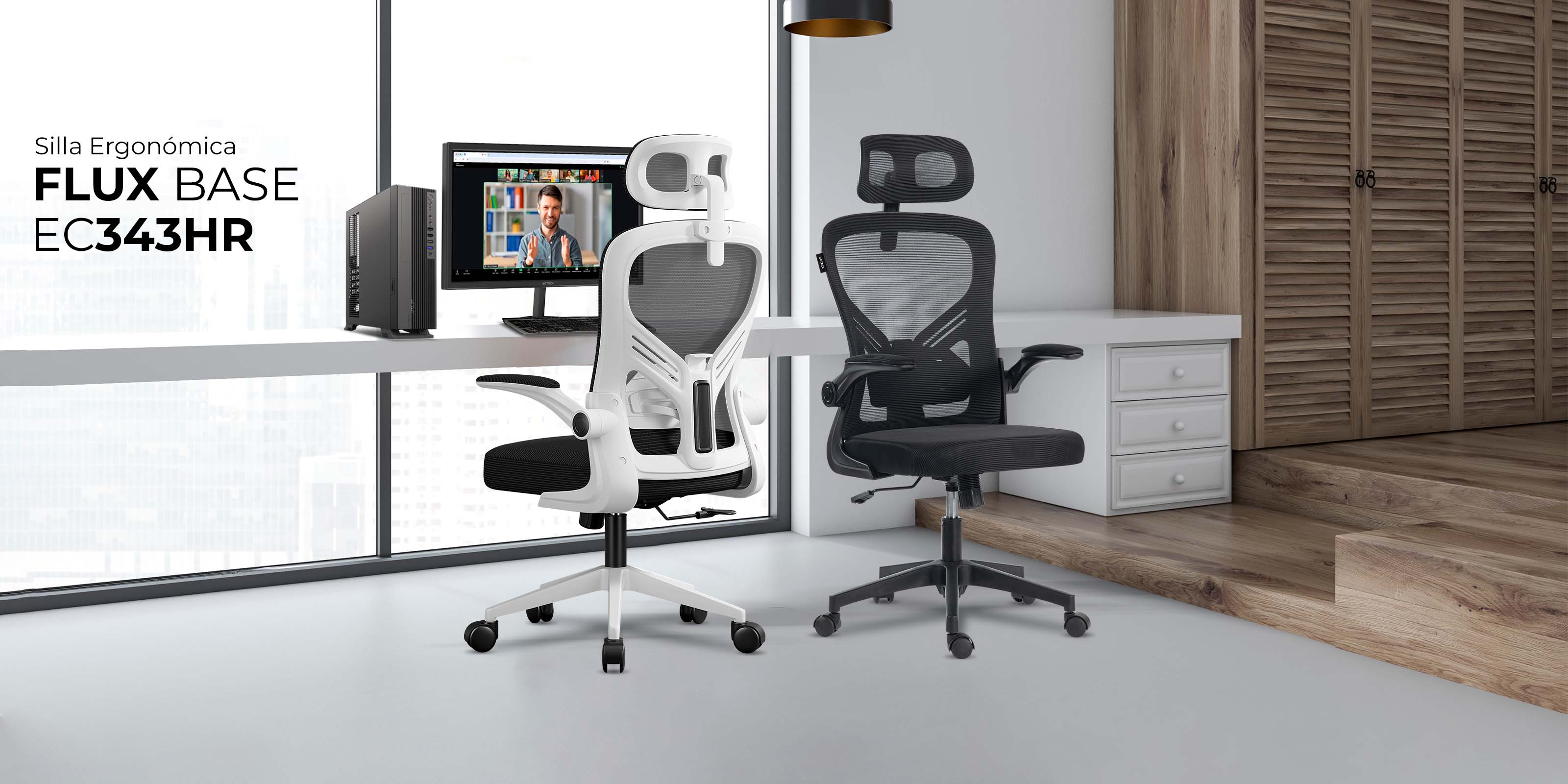 La Silla de Oficina Flux Base EC343HR combina diseño práctico y comodidad para tu día a día. Su respaldo en malla transpirable con espuma de alta suavidad ofrece frescura y soporte ergonómico, mientras que el pistón clase 2 asegura estabilidad y soporta hasta 100 kg. Con su mecanismo mariposa de inclinación de 120° y reposabrazos abatibles a 90°, se adapta a tus movimientos y te ayuda a optimizar el espacio. Su marco negro con malla negra aporta un estilo moderno y profesional ideal para oficina o home office.