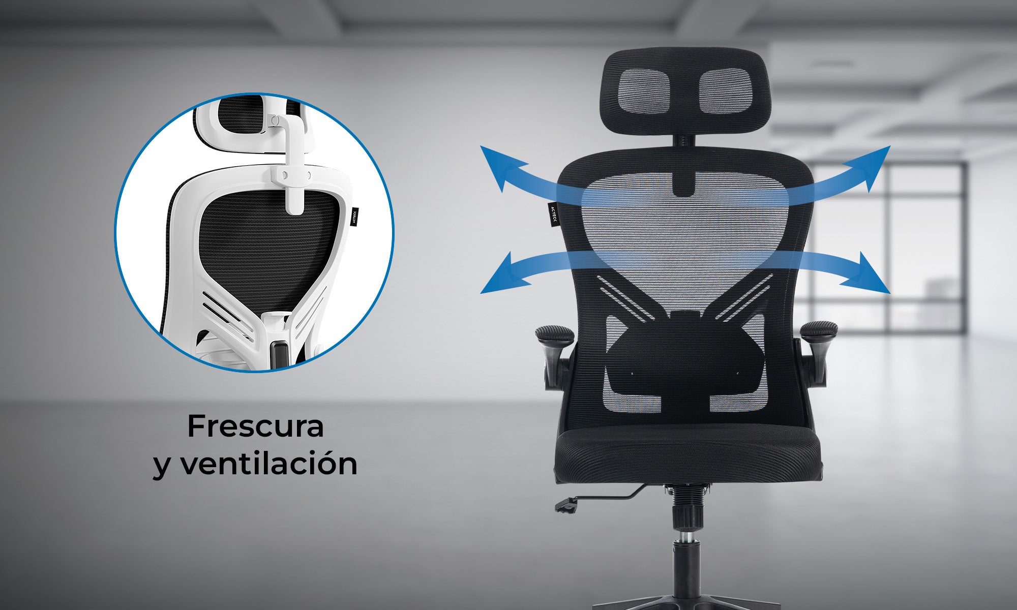 El reposacabezas ajustable se adapta a tu altura y postura, aliviando tensión en cuello y hombros todo el día.