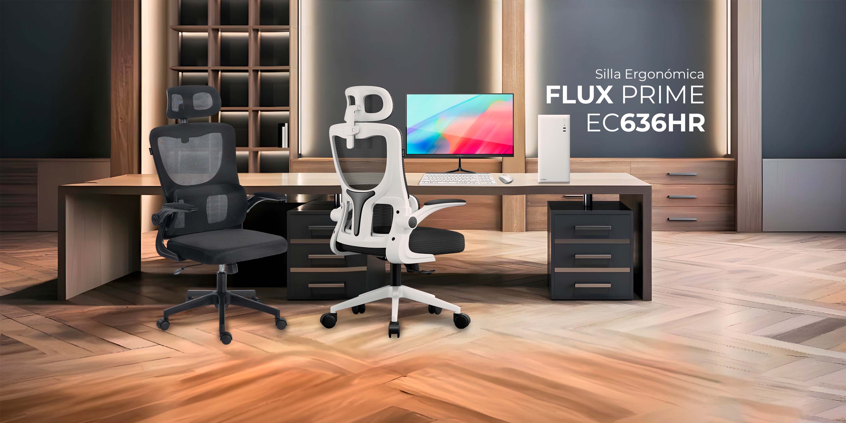 La Silla de Oficina Flux Prime EC636HR está diseñada para ofrecer confort y practicidad en cada jornada. Su combinación de malla transpirable con espuma de alta suavidad proporciona frescura y comodidad por horas, mientras que su pistón clase 2 soporta hasta 100 kg con estabilidad. Incorpora un mecanismo mariposa con inclinación de 120° y reposabrazos abatibles a 90°, ideales para optimizar el espacio cuando no la uses. Con un elegante marco blanco y respaldo en malla negra, aporta un toque moderno y funcional a cualquier oficina o home office.