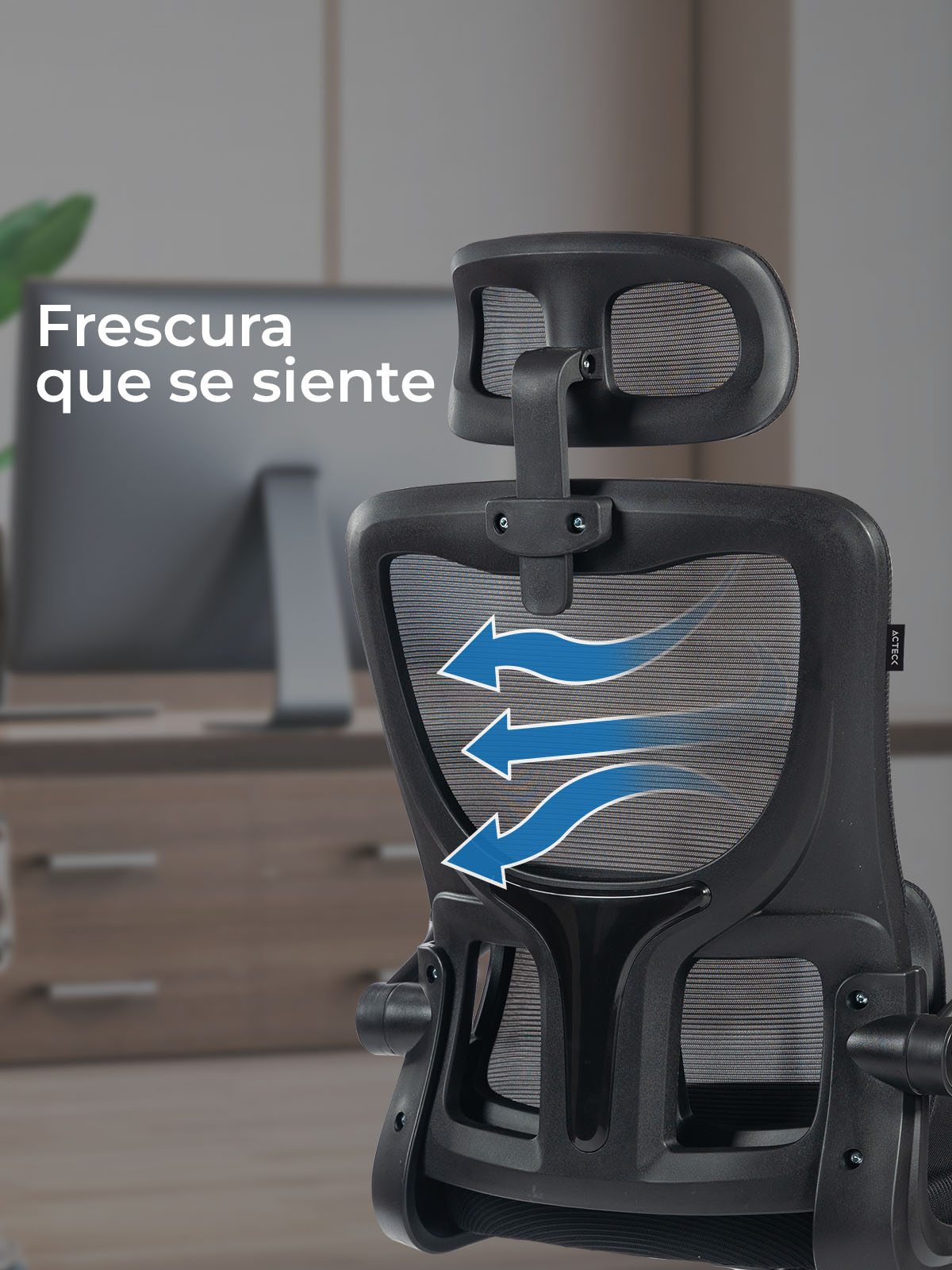 El reposacabezas ajustable se adapta a tu altura y postura, aliviando tensión en cuello y hombros todo el día.