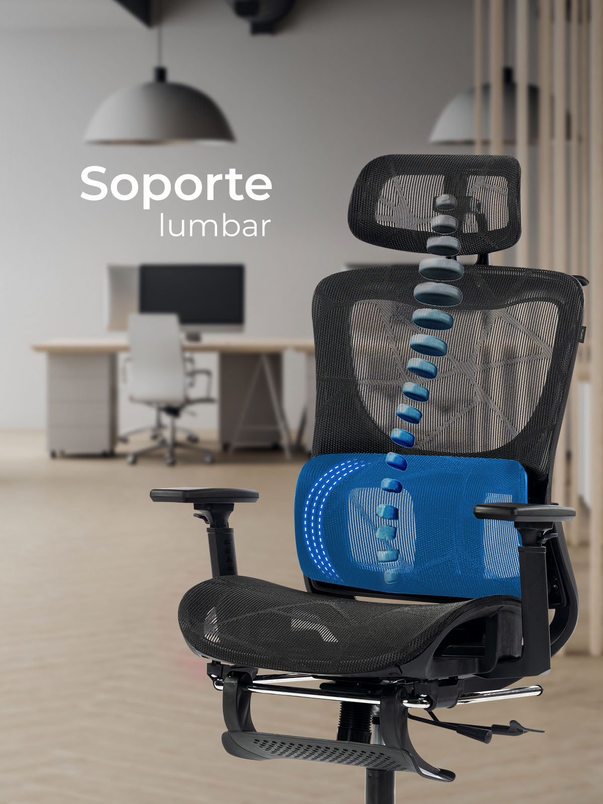 Diseñado para tu comodidad, se despliega fácilmente cuando lo necesitas y se oculta sin ocupar espacio. Perfecto para un descanso ergonómico sin afectar el estilo de tu silla