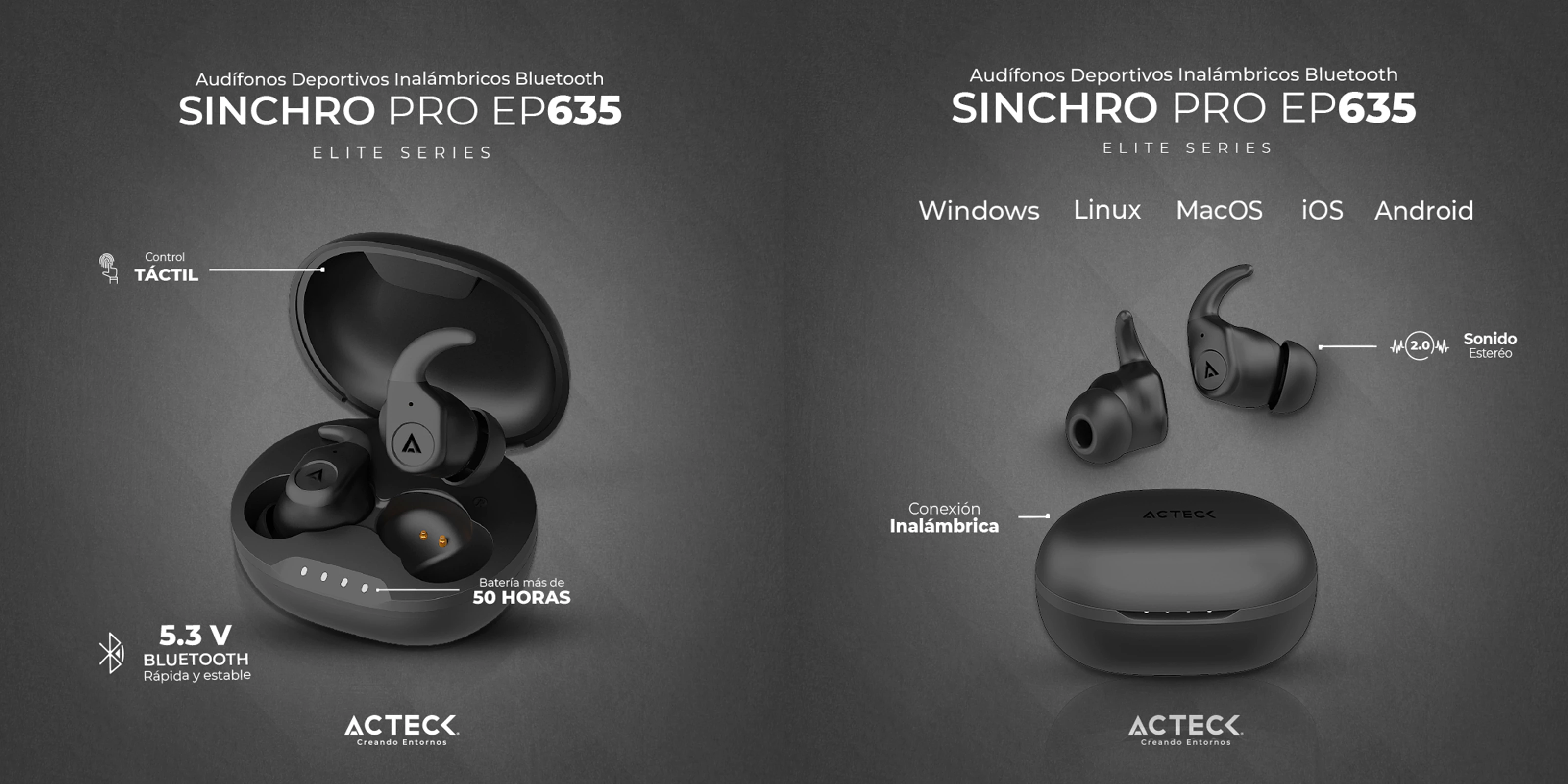 Audifonos In Ear Inalámbricos TWS BT 5.3 Sport ENC | Sinchro Pro EP635 | Negro