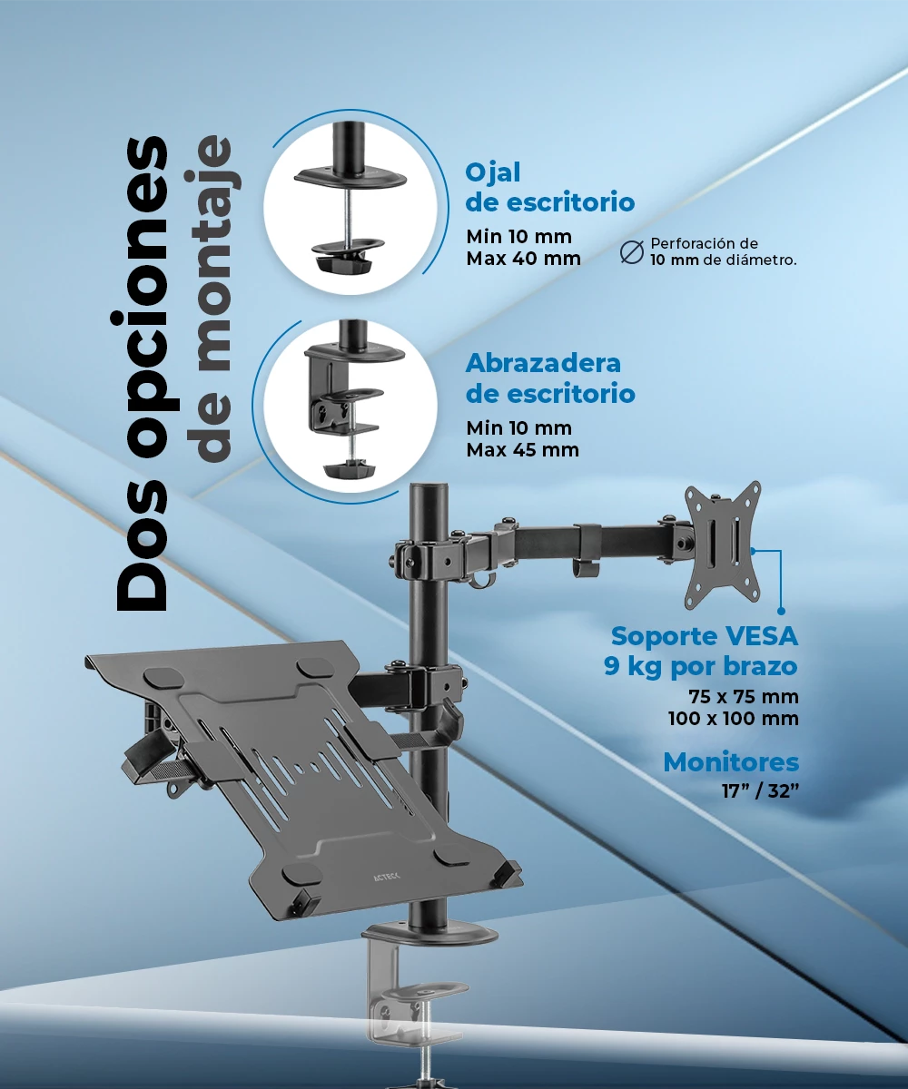 Soporte Articulado para Escritorio Articulado para 1 Monitor + 1 Laptop / 17" - 32 " | Enforce Zone SM480 | Negro