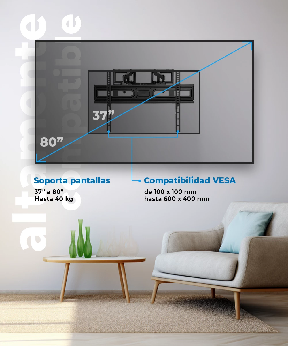 Adapta cualquier espacio con facilidad y estilo, compatible con una amplia gama de monitores.