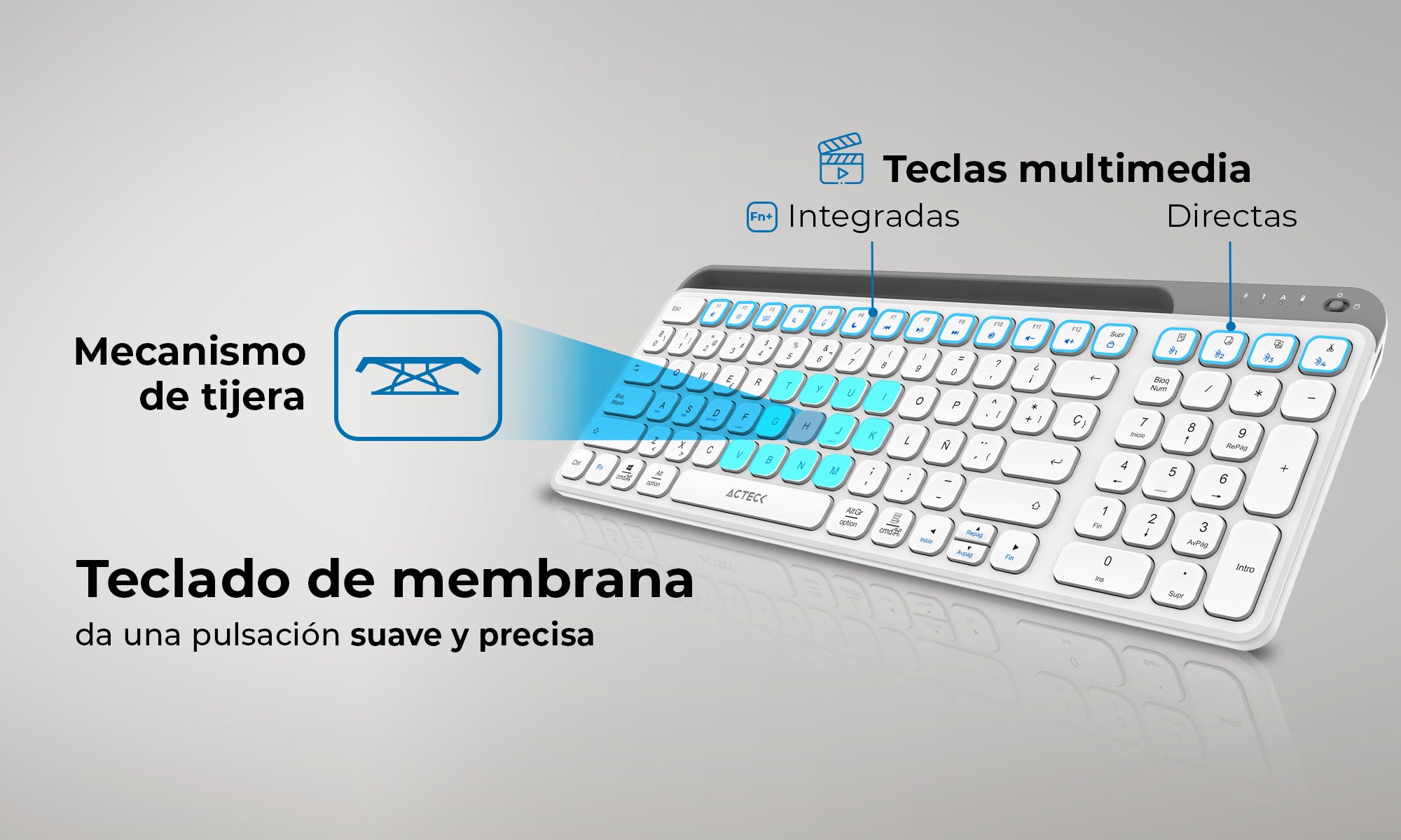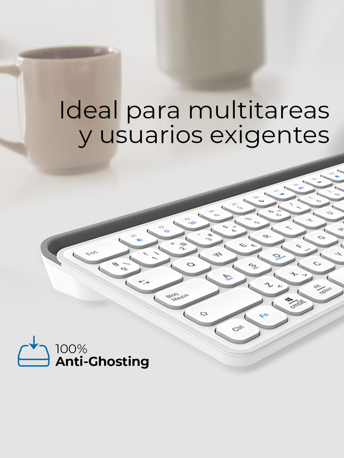 Este teclado está construido para soportar el uso diario sin perder su aspecto impecable. Su robustez y estilo destacan, brindándote lo mejor en rendimiento y elegancia.