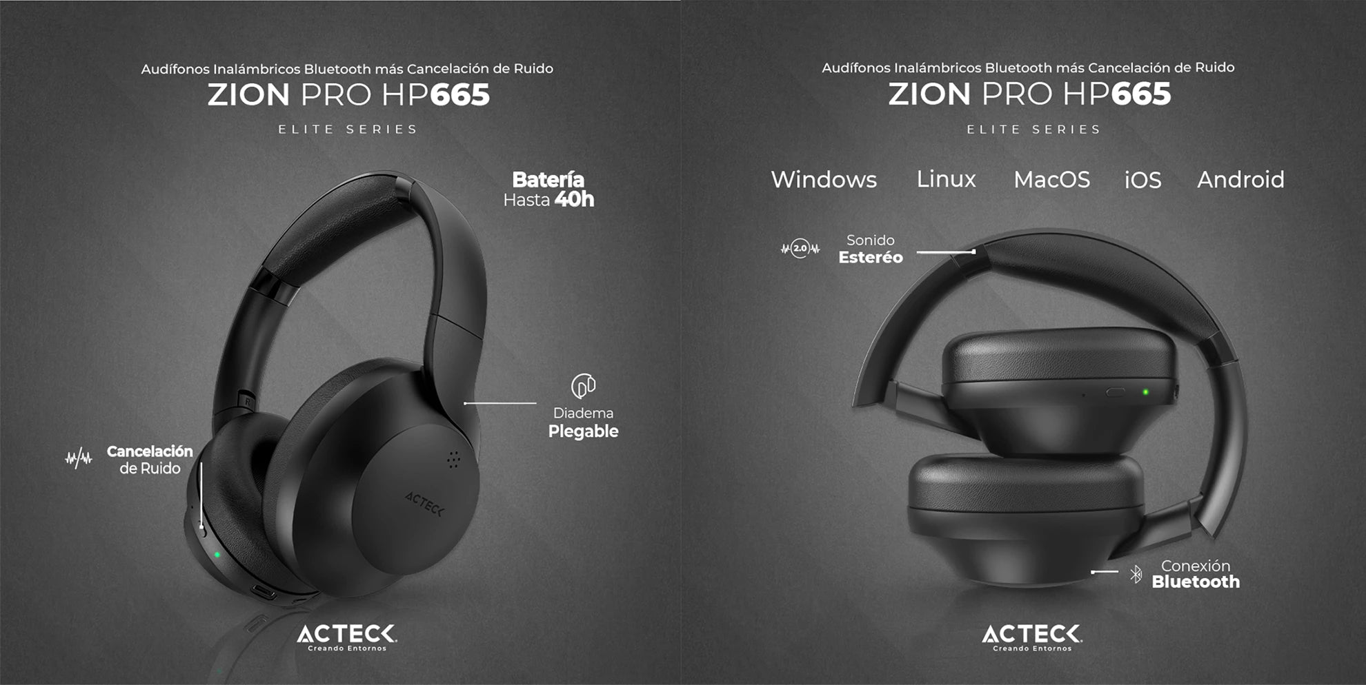 Estos audífonos over ear inalámbricos cuentan con Bluetooth 5.0, proporcionando una conexión estable y rápida, y cancelación de ruido activa, que aísla eficazmente los sonidos externos para una inmersión total en el audio. Con un acabado elegante en negro y una construcción ergonómica, garantizan comodidad y estilo durante el uso prolongado. Los Zion Pro HP665 son la elección ideal para aquellos que buscan calidad superior, funcionalidad y una experiencia de audio sin interrupciones, haciendo de cada escucha un placer incomparable.